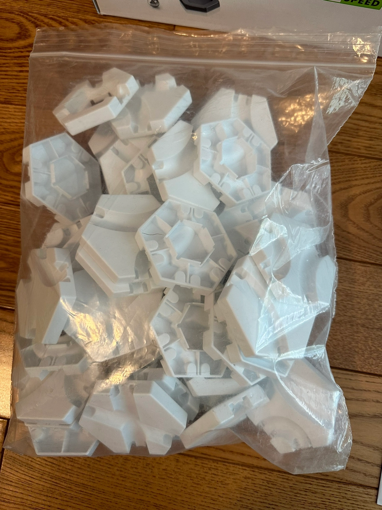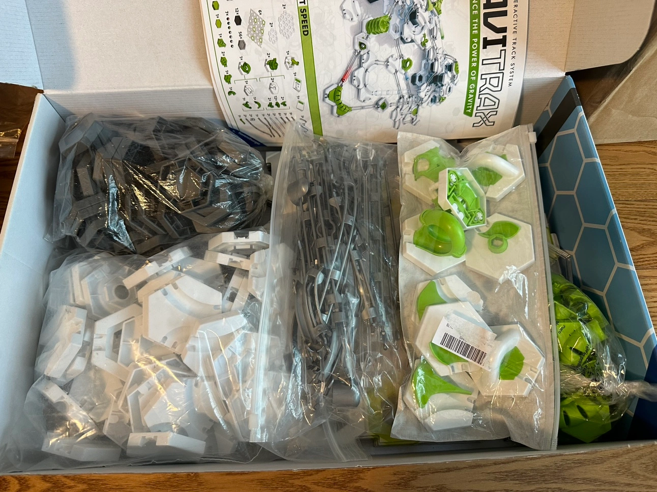 Bought this new and it is in excellent or like-new condition. All the pieces are still intact and like new. No pieces have been lost. The value for this item is $160 before tax. I am asking only $60 for this cool marble run set. You can save yourself $100+tax. Believe me when I say it has been kept very clean and in its original shape. You can take a good look at it and even count the pieces if you want to. Amazing deal.