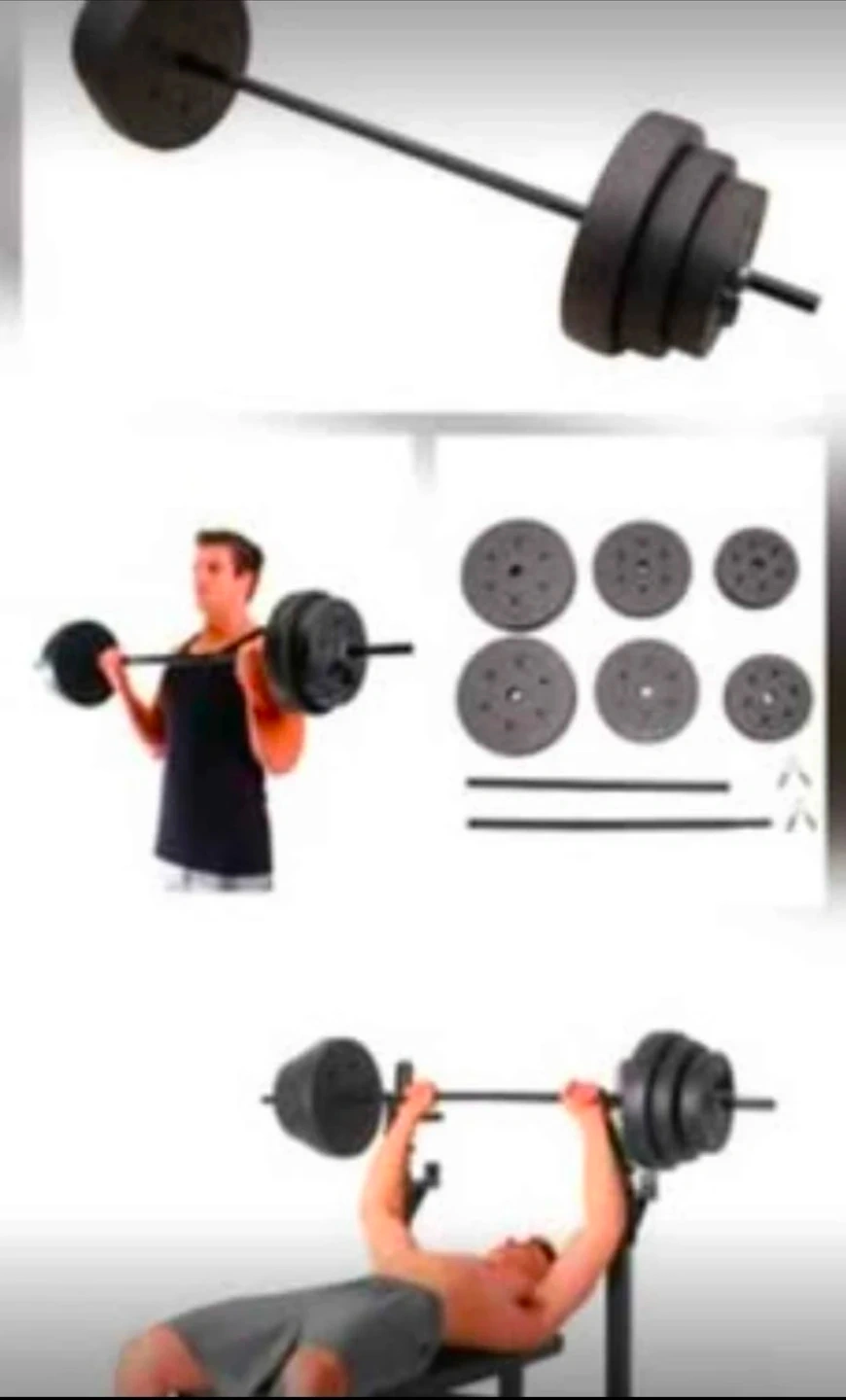 *** Brand new Weight set includes: two 25 lb, two 15 lb and two 10 Ib, 2 collars and one 2 piece bar!