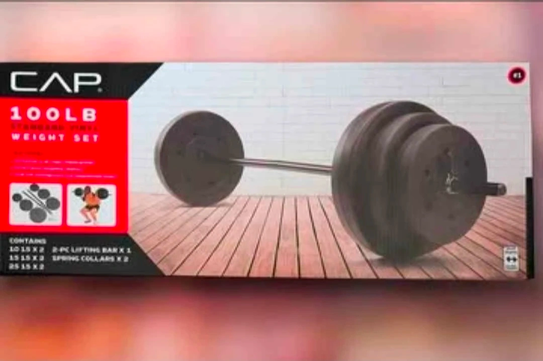 100lb Vinyl Weight Plates with Barbell Set from CAP - New!
