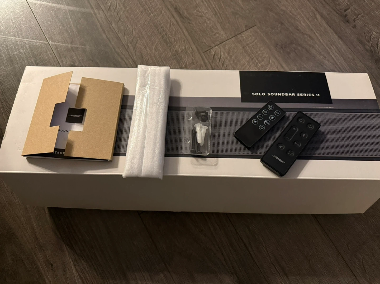Have a minimally used Bose soundbar…have original box, wall mount is still in packaging, 2 remotes, power cable and optic cable, has Bluetooth and the sound is amazing…