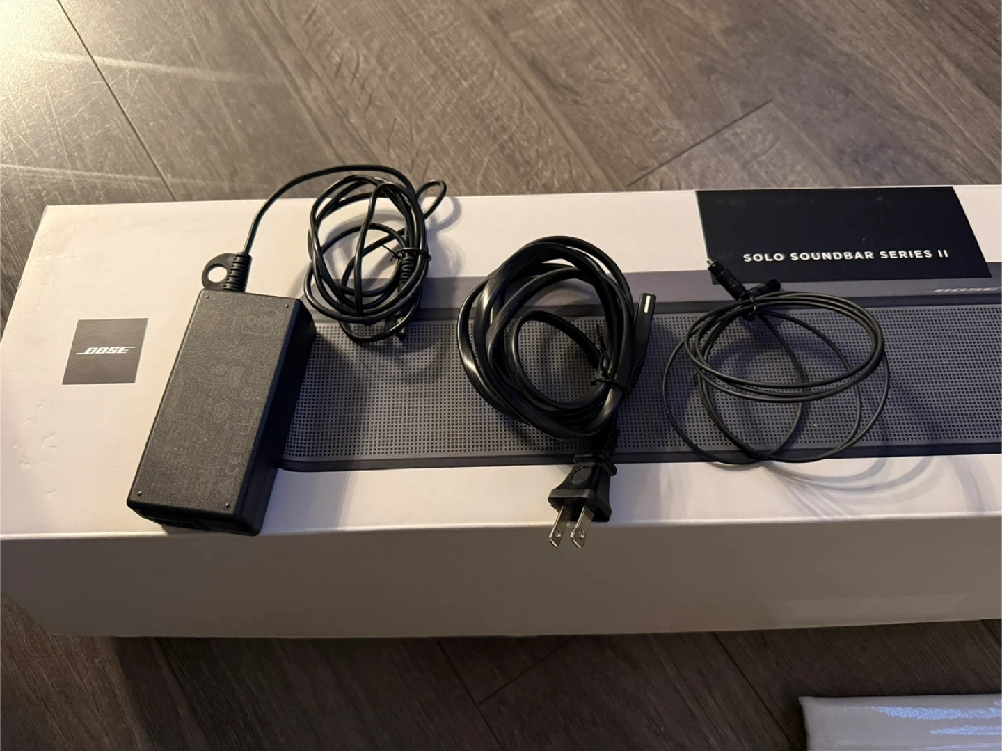 Have a minimally used Bose soundbar…have original box, wall mount is still in packaging, 2 remotes, power cable and optic cable, has Bluetooth and the sound is amazing…