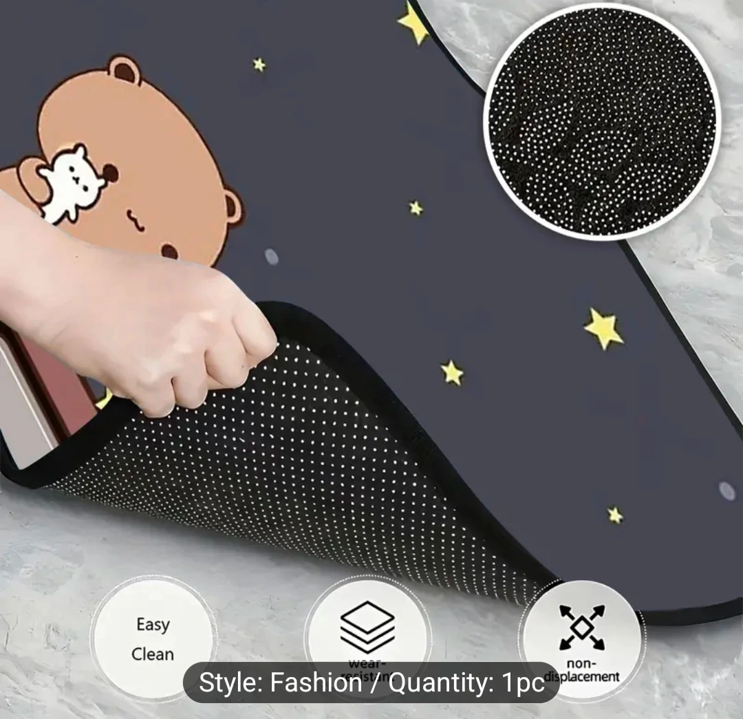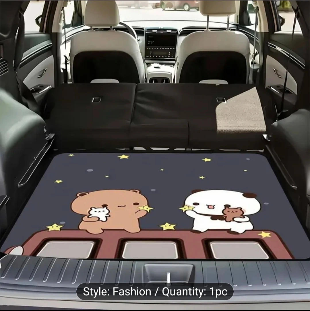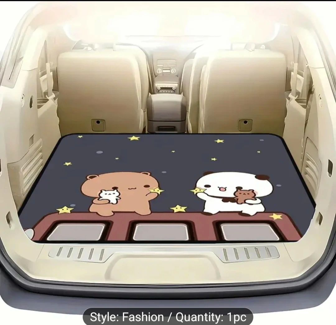 A cute car trunk mat featuring a charming bear and star design. It's easy to clean and has a non-slip backing. Dimensions are 100cm x 75cm. This mat's adorable design adds a fun touch to your vehicle's cargo space!