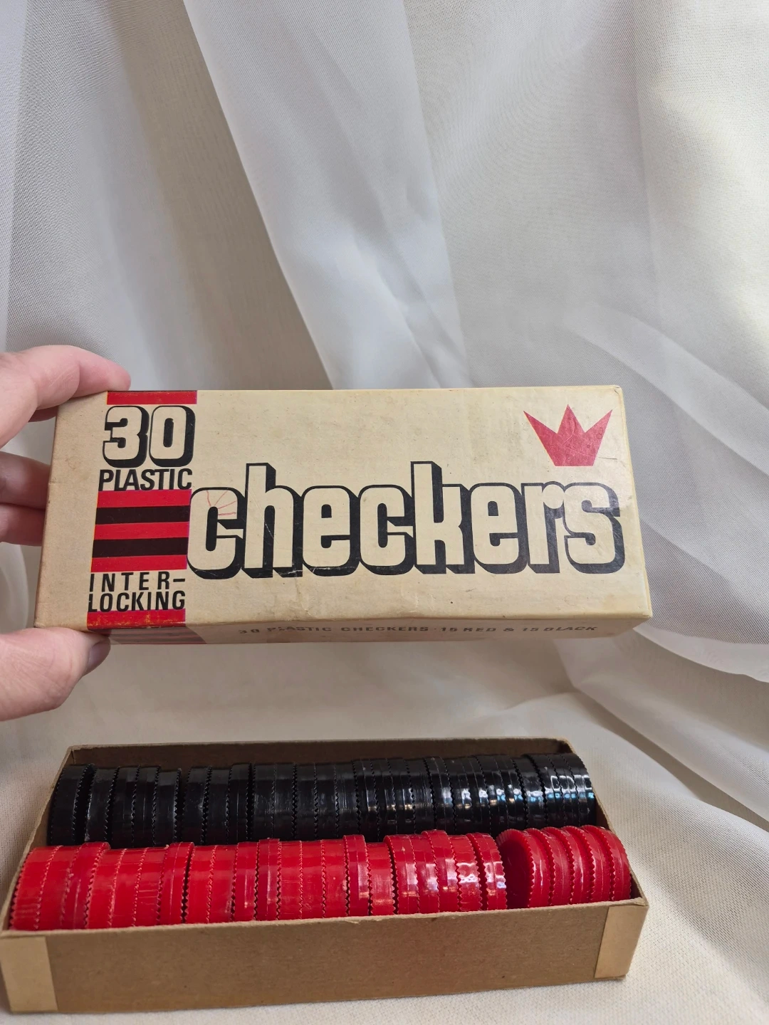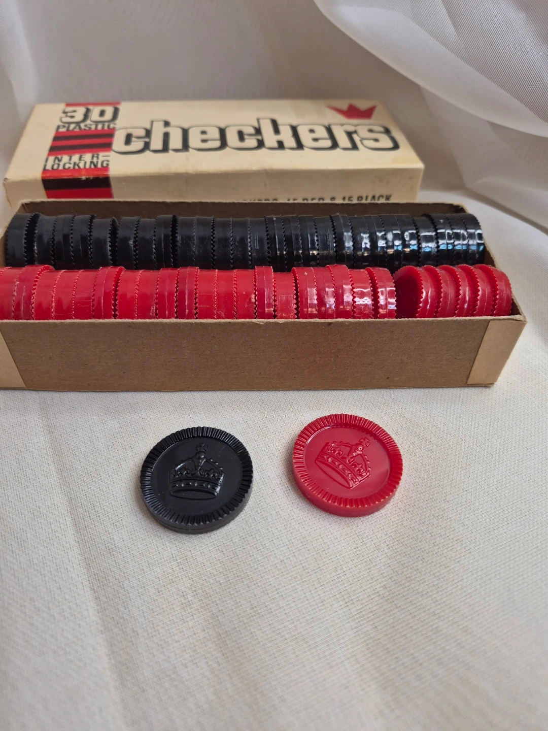 Lot of 54 Vintage Plastic Checker Pieces 27 Red 27 Black - interlocking- Excellent Condition please see all pictures selling all together