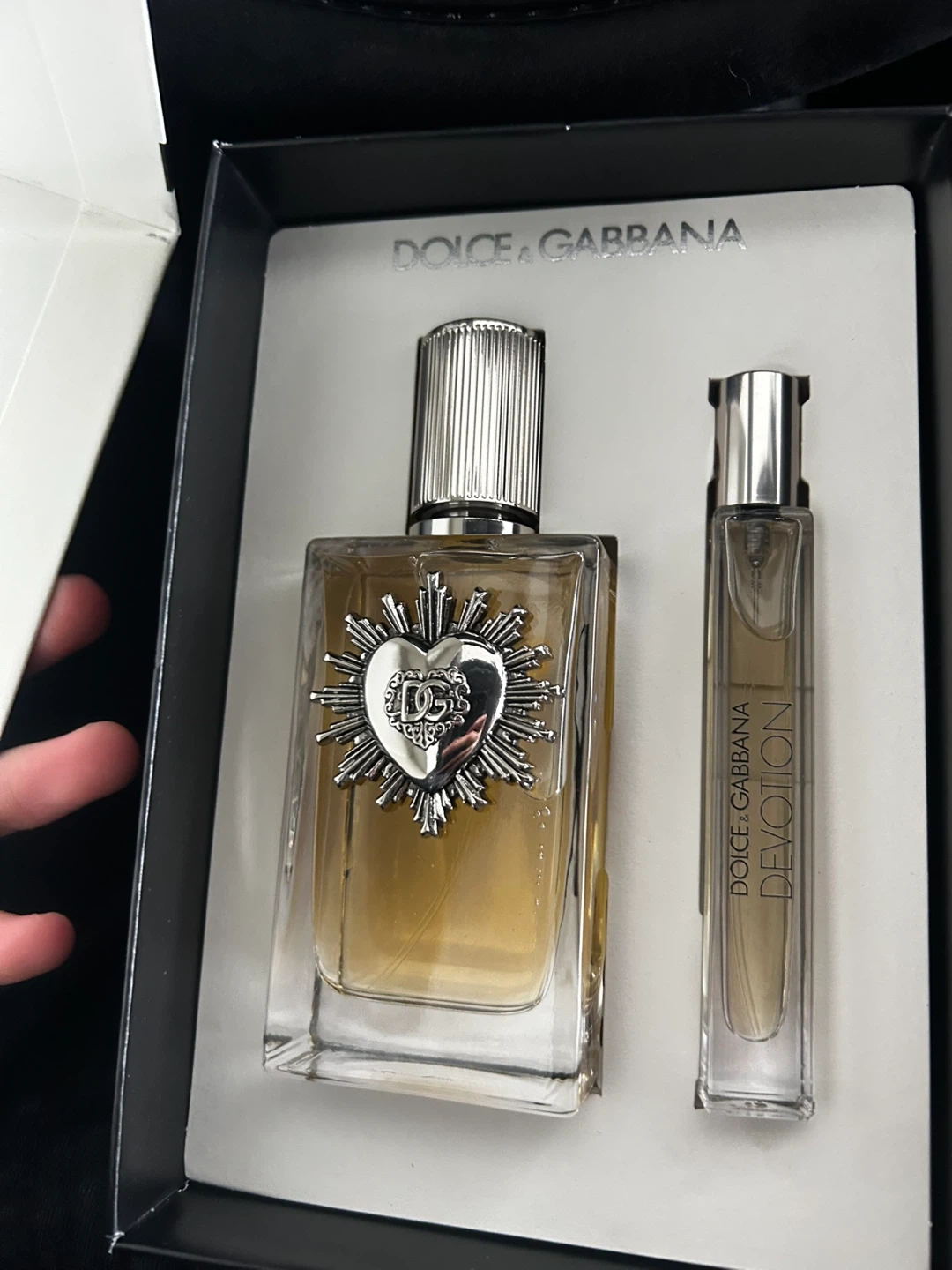 Selling a Dolce & Gabbana Devotion Pour Homme set! It includes a 100ml Eau de Parfum and a 10ml travel-size Eau de Parfum. Comes in the original box.