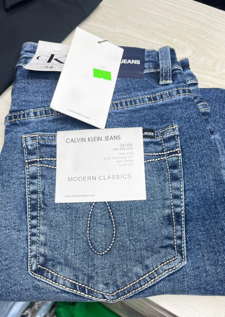 Selling a pair of Calvin Klein jeans in size 34. They are a mid-rise slim fit, slim through the hip and thigh, with a slim leg. Modern classics!
