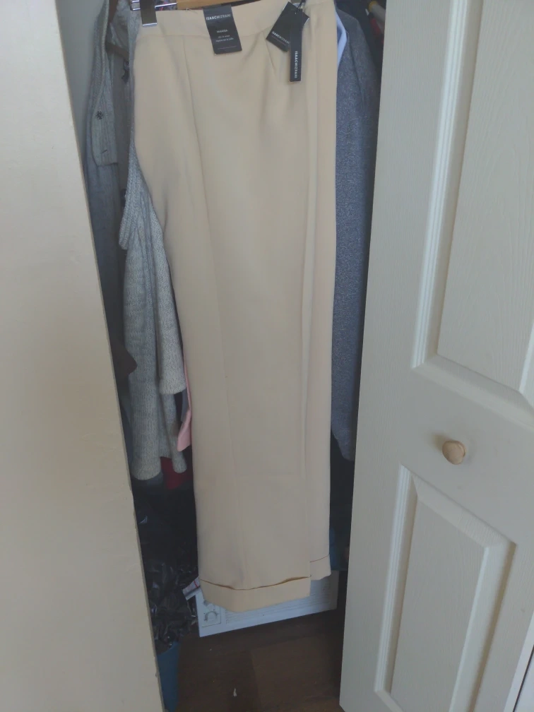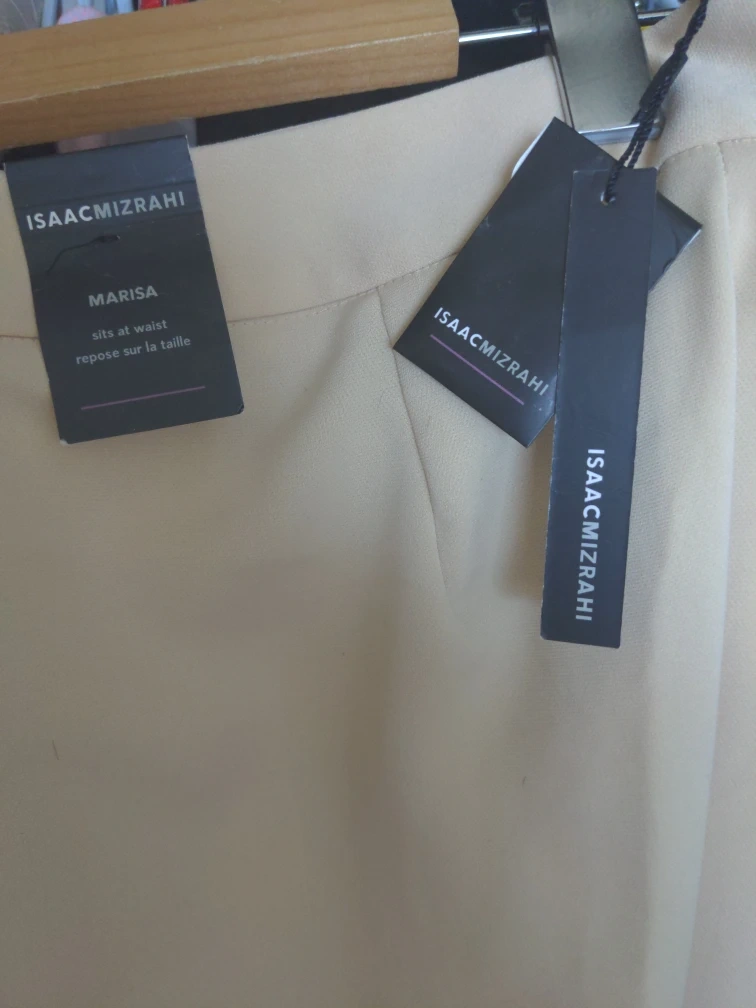 Isaac Mizrahi Marisa pants in a beige colour. These pants sit at the waist. Material is a polyester blend. Size 8