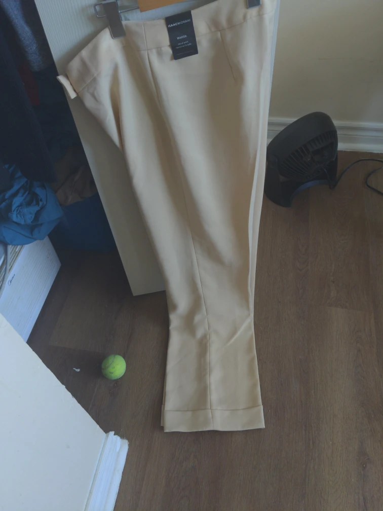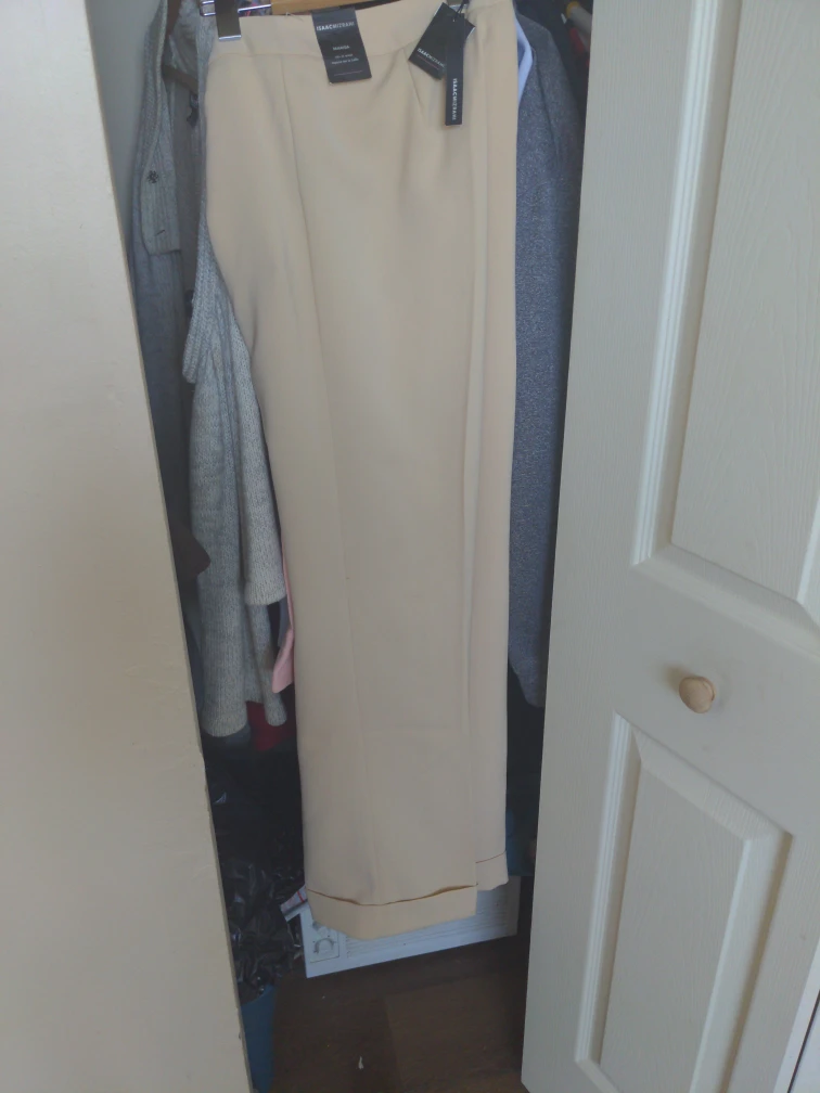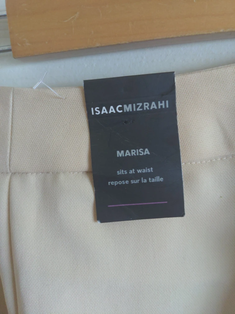 Isaac Mizrahi Marisa pants in a beige colour. These pants sit at the waist. Material is a polyester blend. Size 8