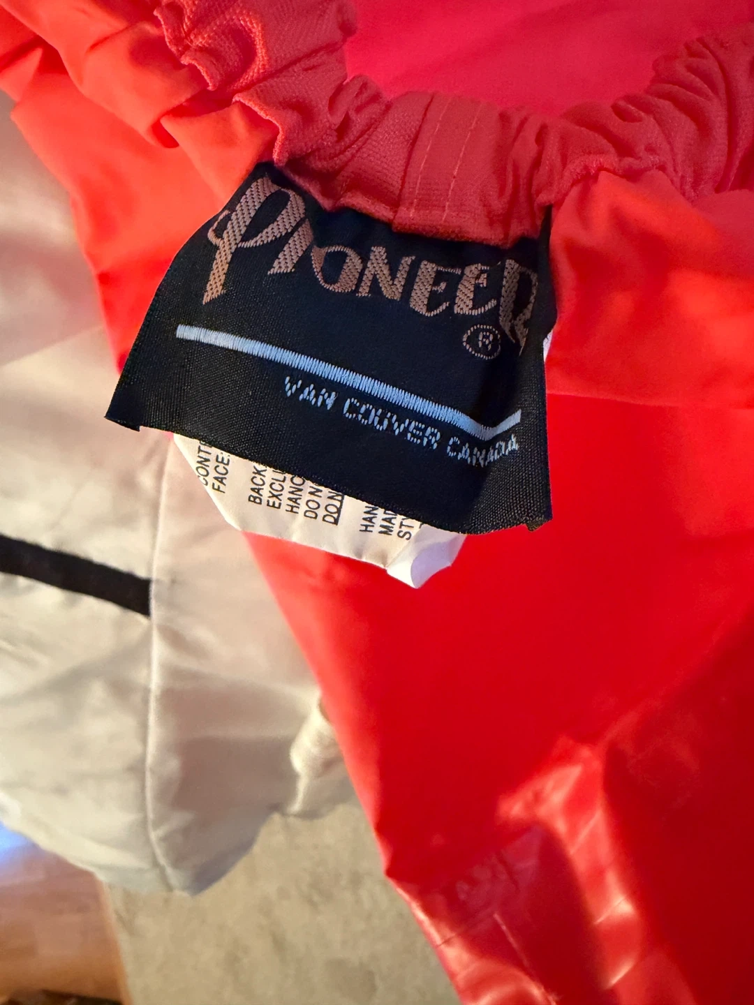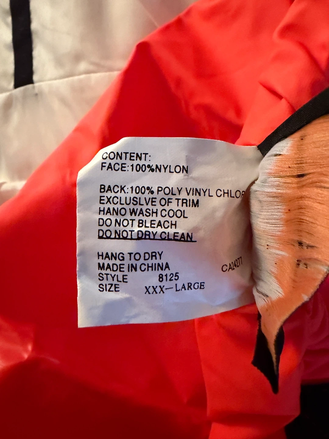Pioneer bib overalls, perfect for staying dry. Made with 100% nylon face and 100% polyvinyl chloride back. Hang to dry and hand wash cool, do not bleach or dry clean. Size XXX-Large.