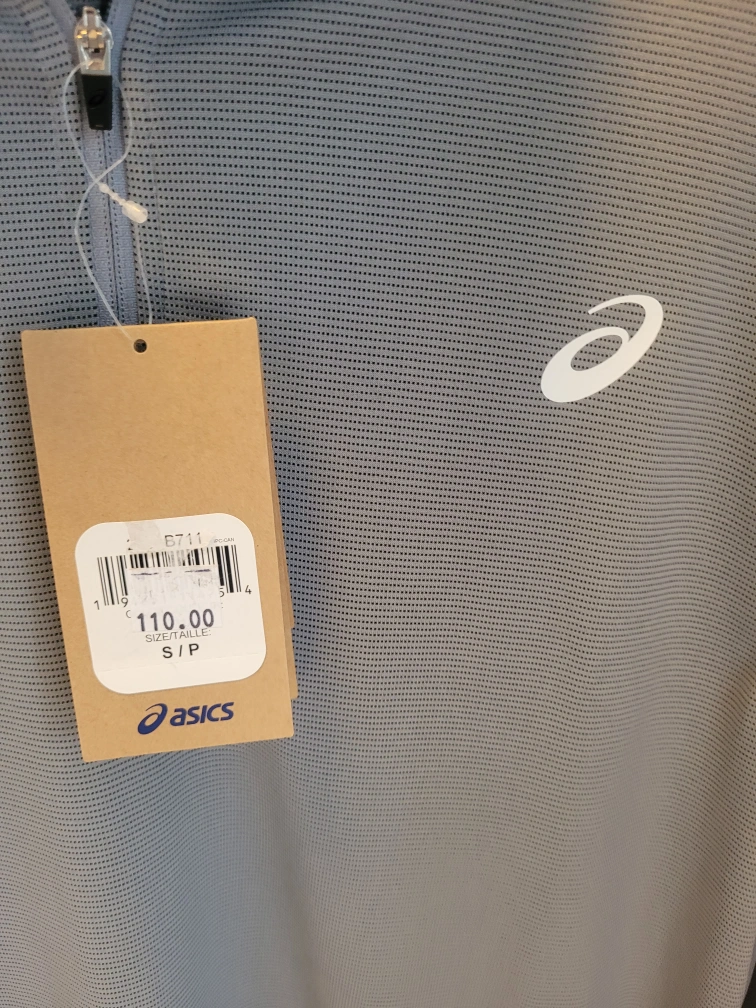This is an new Asics grey 1/4 zip pullover in size Small. The tag shows it originally retails for $110 + tax. It's new and ready for your next workout or golf...