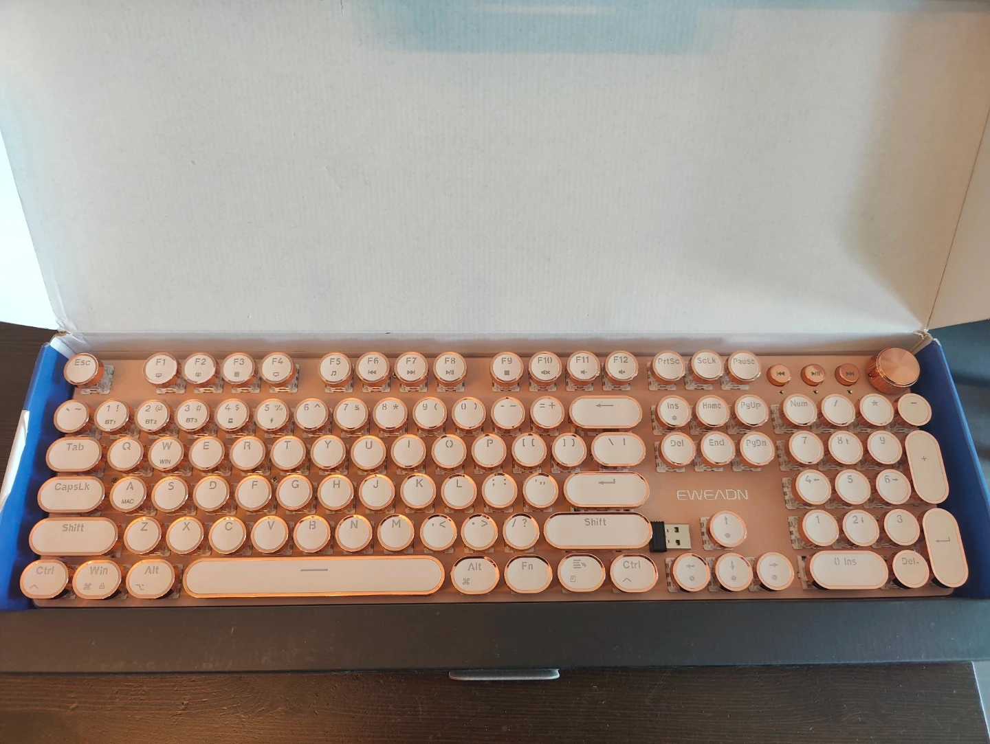 Buy & SellEWEADN Pink Mechanical KeyboardEWEADN Pink Mechanical Keyboard$45A rose gold mechanical keyboard with round retro keycaps. It's a wired keyboard with 104 keys. It has RGB backlighting.ConditionNewBrandEWEADNWHERE TO MEETSaint Clair Avenue WestView MapSELLERverifieddixiCorso Italia73860 reviews0 chats·0 favorites·3 viewsSEND CHAT TO SELLERHi dixi! I’m interested in your listing.Hi dixi! I’m interested in your listing.Get the Karrot app to chatSign In to chat