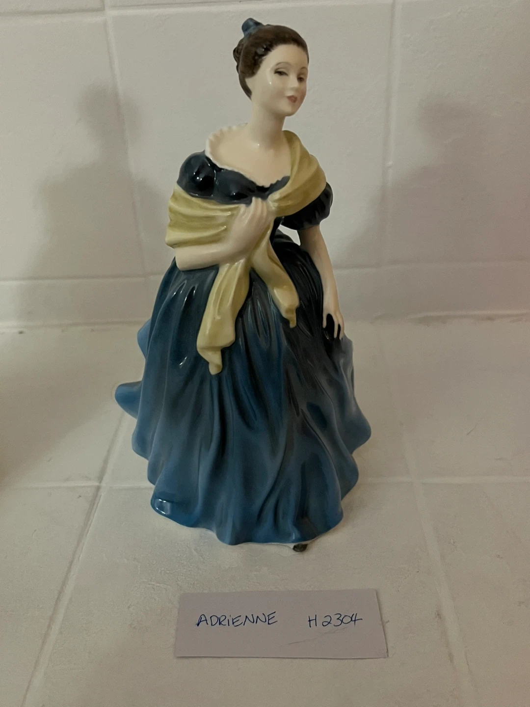 A collection of decorative porcelain figurines. Each piece depicts a lady in period dress, with unique names like Natalie, Adrienne, Alexandra, Coralie, and Belle. Various HN numbers are associated with these pieces.