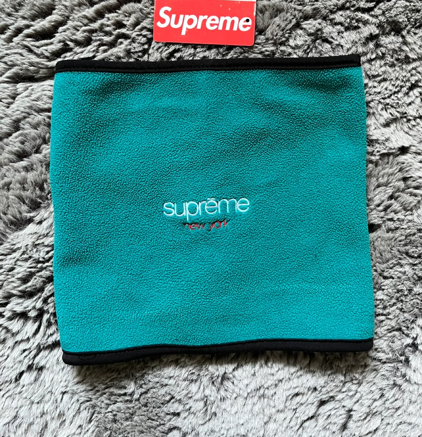 This Supreme neck gaiter is made from 100% polyester fleece. It features a PolarTec fabric for warmth. Keeps your neck warm and protected from the elements!