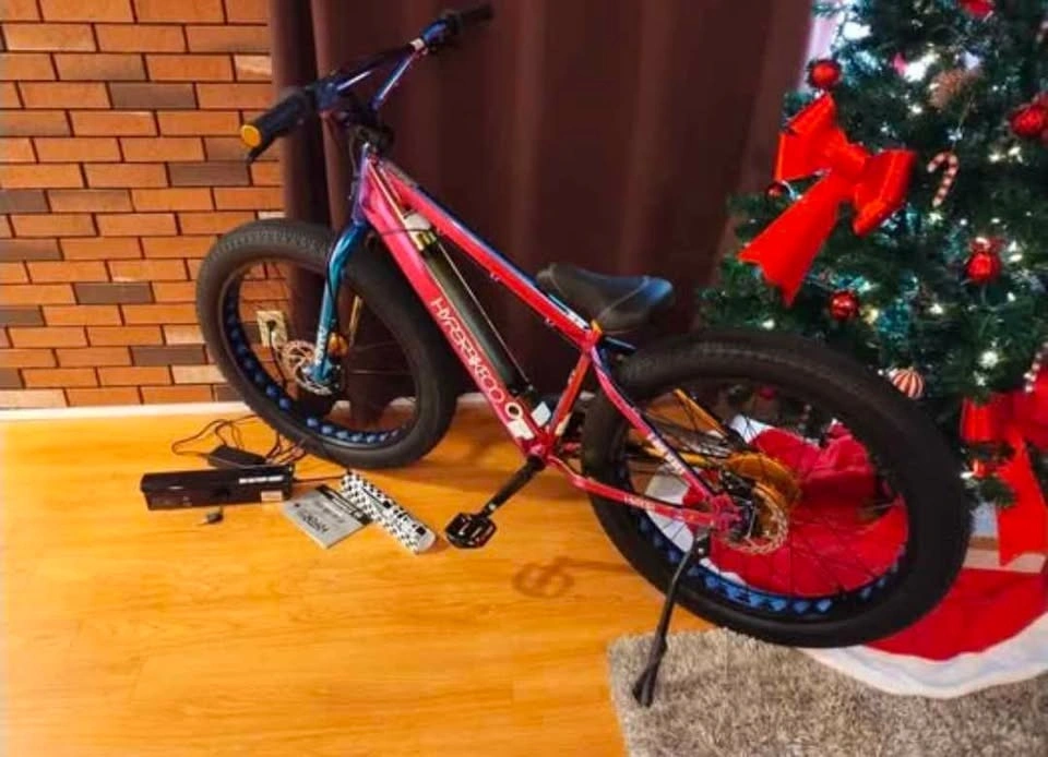 Willing to trade for a kids bike, any style with 20 to 24 inch tire size. Hyper Jet Fuel Series 36v battery assist ebike. 36V/10.4 AH integrated flush-mount battery, 36V/250W rear hub brushless motor, oversized 26in x 3.5 in tires, lightweight aluminum frame, front and rear disc brakes, premium padded and adjustable saddle, alloy wheels and three piece cranks.