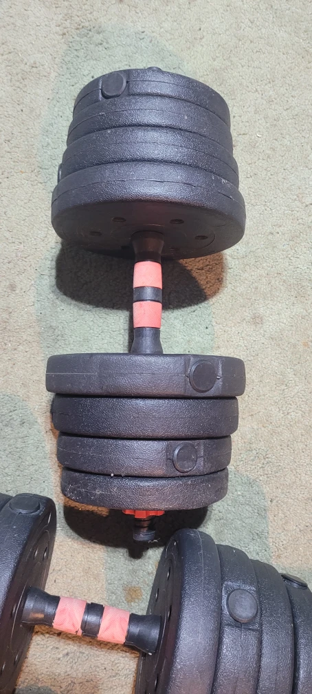 Selling a pair of adjustable dumbbells. They show some signs of use but are still in good working condition. Perfect for home workouts!