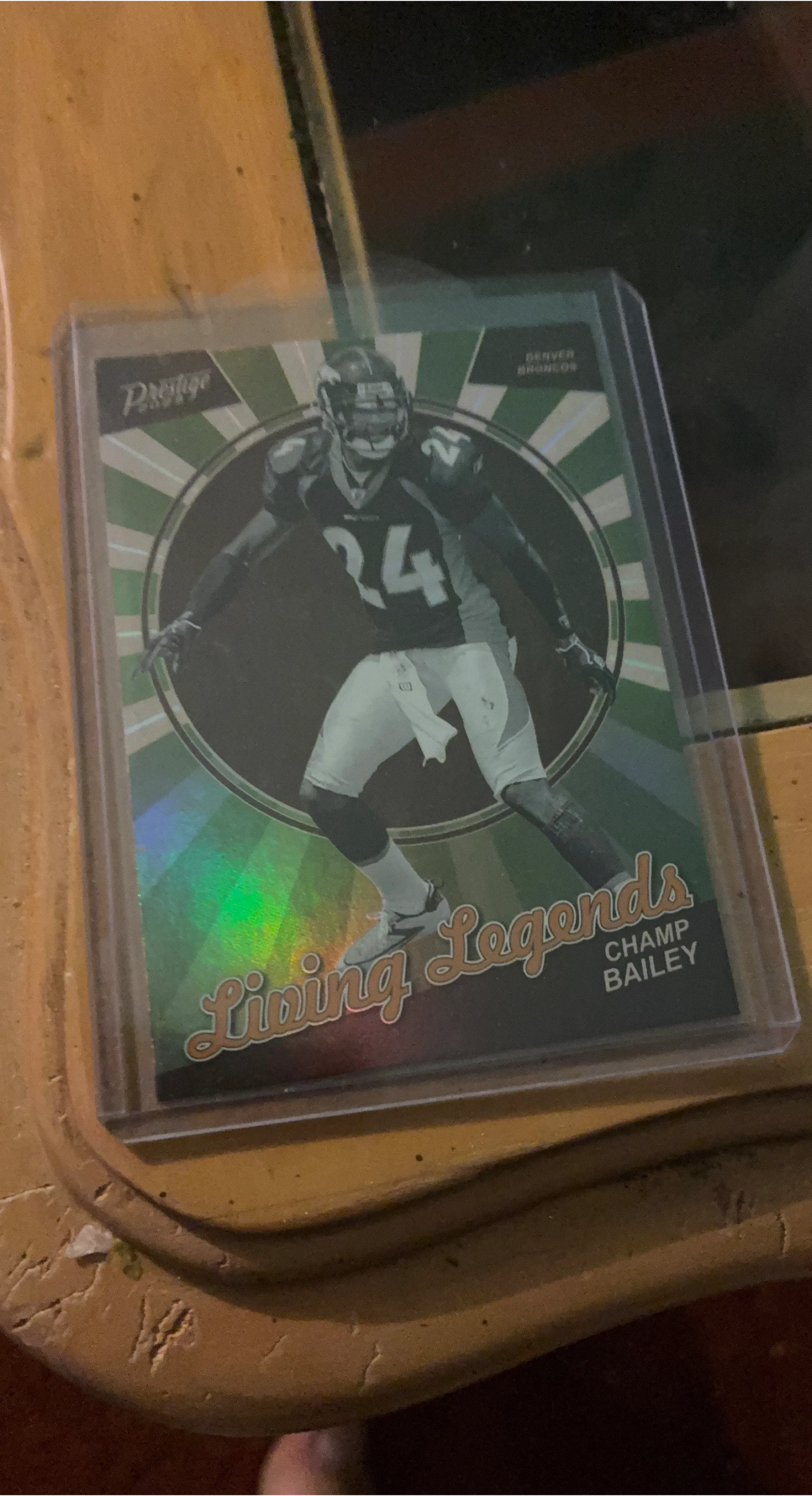 This is a Prestige Living Legends football card featuring Champ Bailey. It shows the Denver Broncos player in action. A great card for any collector!