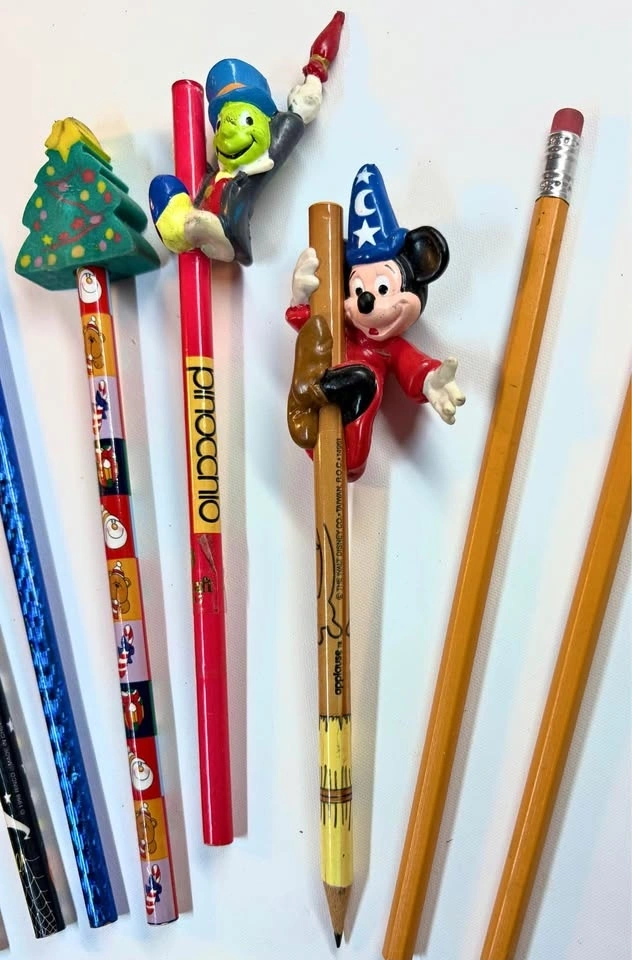 Mickey Mouse pencil and Pinocchio pencils are vintage, over 25 years old.