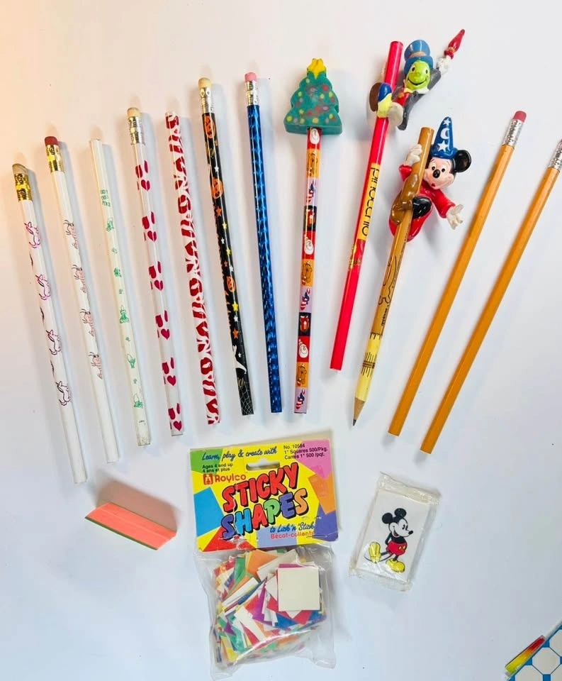 Vintage Mickey Mouse & Pinocchio Pencils, Mickey Eraser, School