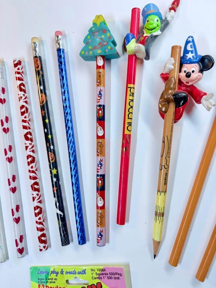 Mickey Mouse pencil and Pinocchio pencils are vintage, over 25 years old.
