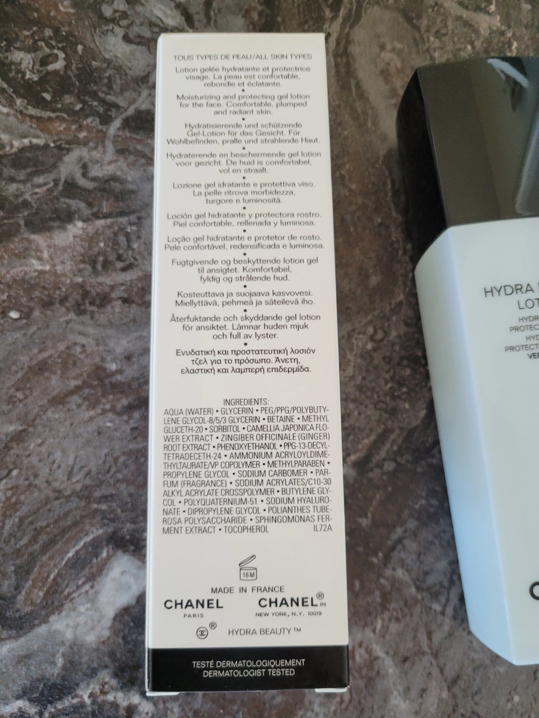Brand new Chanel Hydrating and protecting lotion. Moisturizing gel-lotion. Very moist. For all skin types.