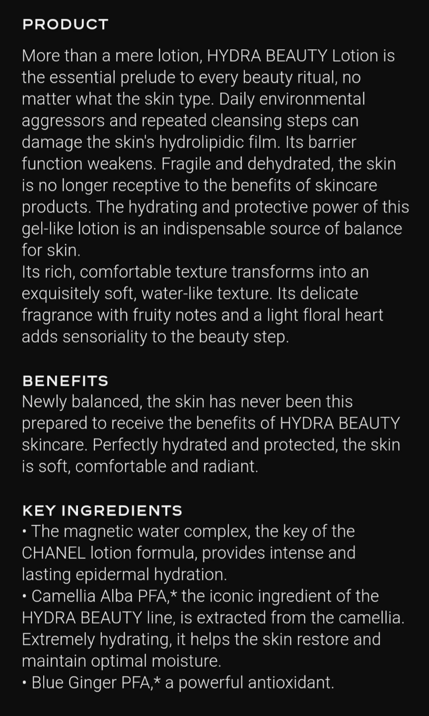Brand new Chanel Hydrating and protecting lotion. Moisturizing gel-lotion. Very moist. For all skin types.