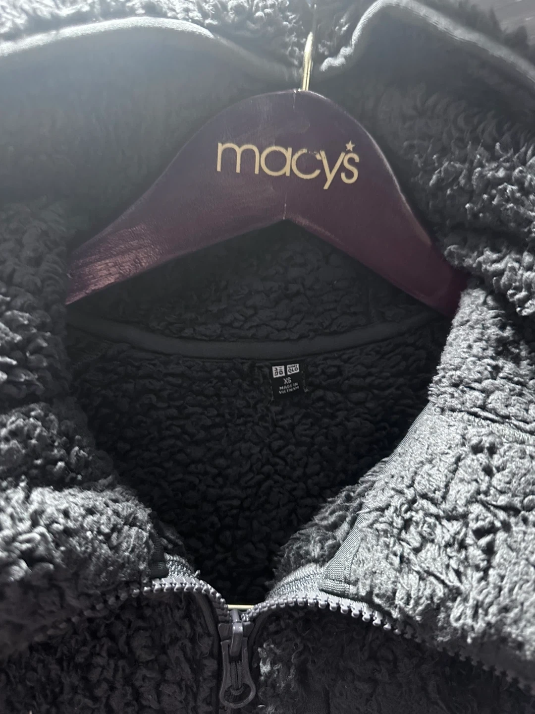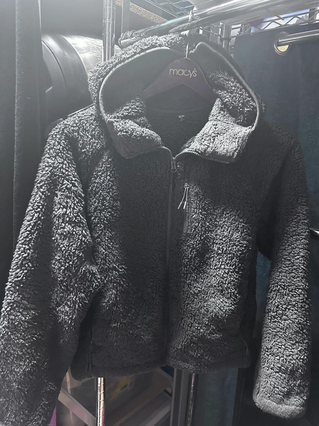 Selling a super cozy Uniqlo Fluffy Yarn Fleece Full-Zip Jacket! It's a size XS and in a lovely dark gray color. Perfect for layering or wearing on its own for a comfy, casual look. It's in great condition and ready for a new home!