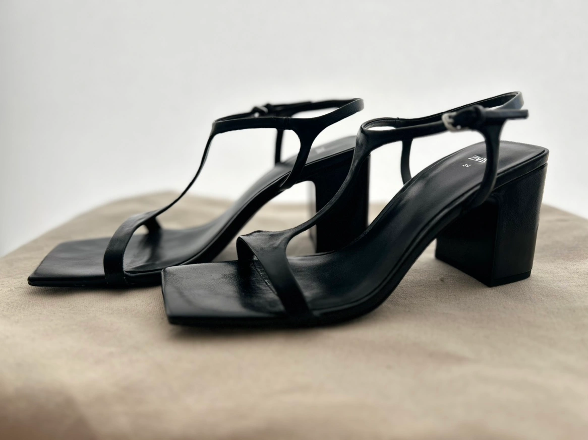 Zara Black Square Toe Heels