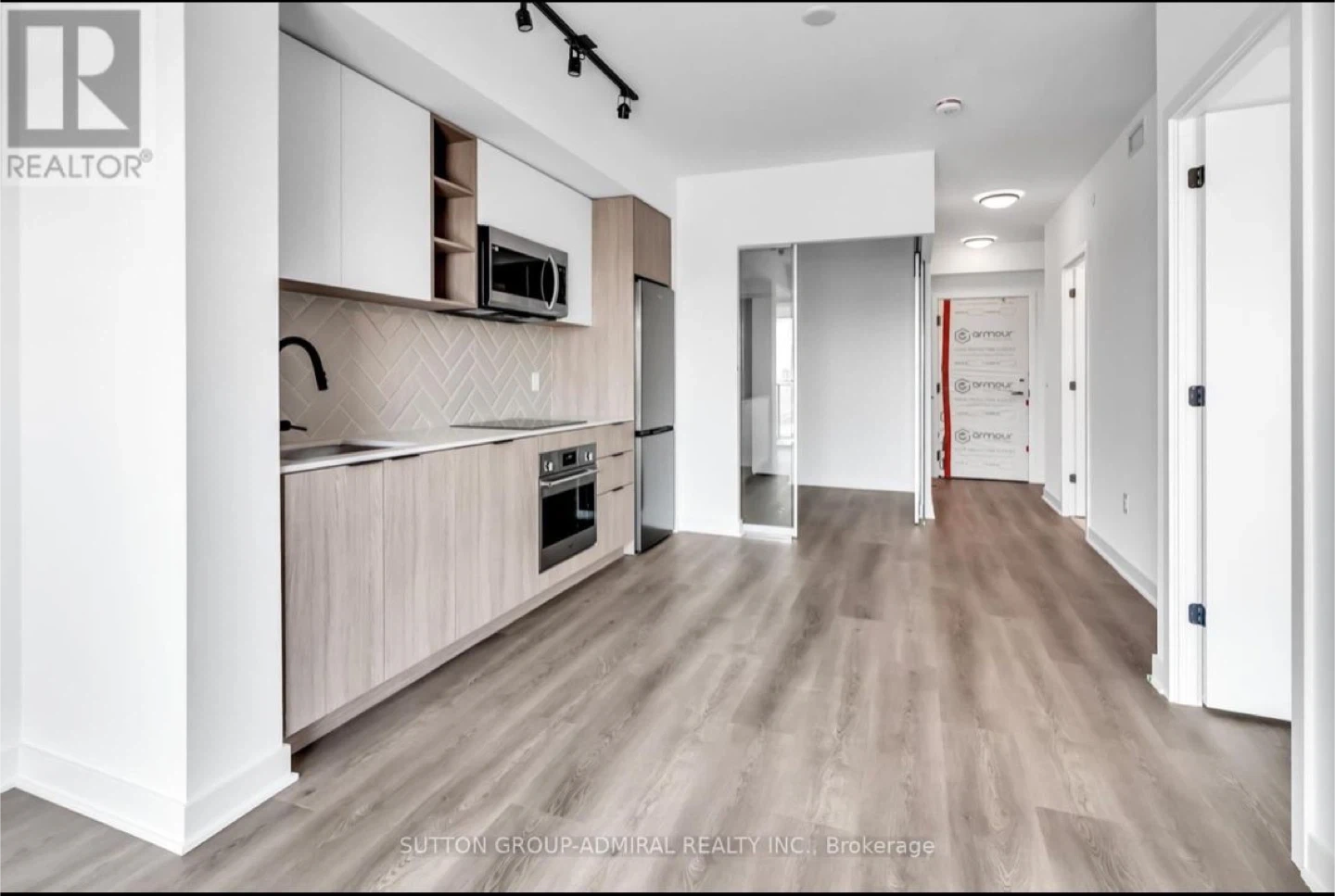 Bright and spacious condo unit featuring a modern kitchen and a private balcony with city views. Beautiful 23rd Floor Condo Unit for Rent 2 Bedroom + Den with 1 Bath - 700 Sq Ft. Located near Evans Ave + Horner Ave. without In-suite laundry (stacked washer/Dryer)