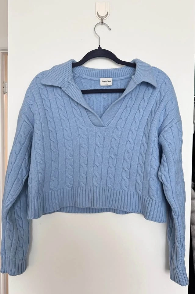 Aritiza Sunday Best baby blue cableknit collared sweater. Size M. Pick up near Bloor & Yonge.