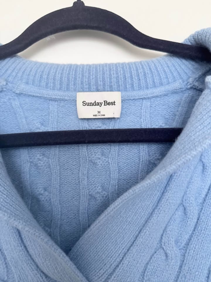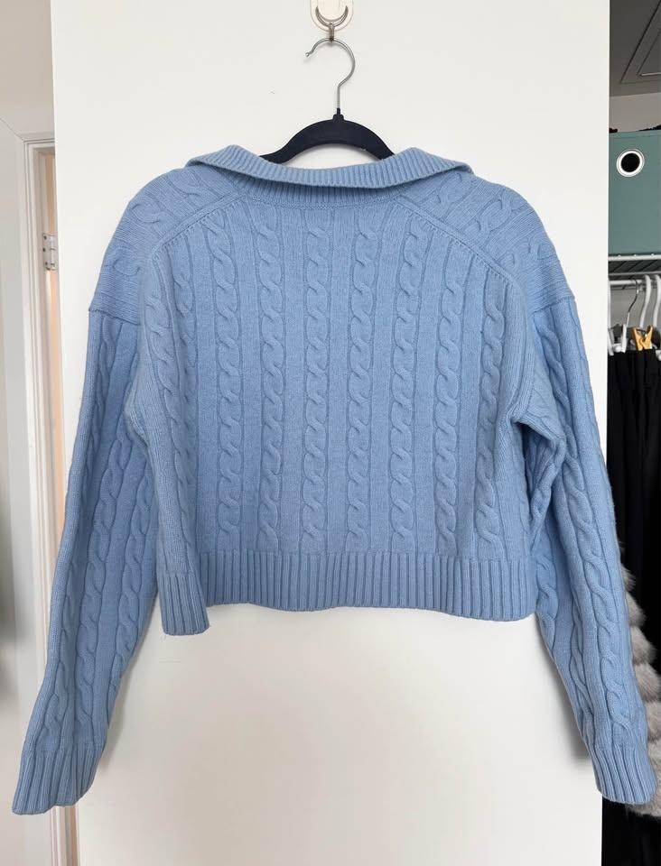 Aritiza Sunday Best baby blue cableknit collared sweater. Size M. Pick up near Bloor & Yonge.