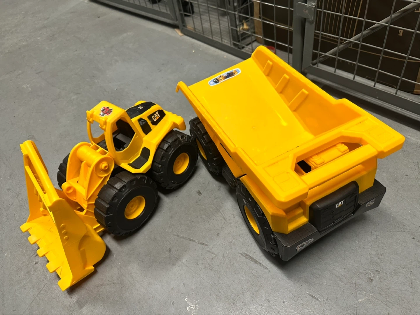 This yellow CAT toy set includes a bulldozer and a dump truck. They're made of durable plastic and designed for little construction enthusiasts. Perfect for imaginative play!