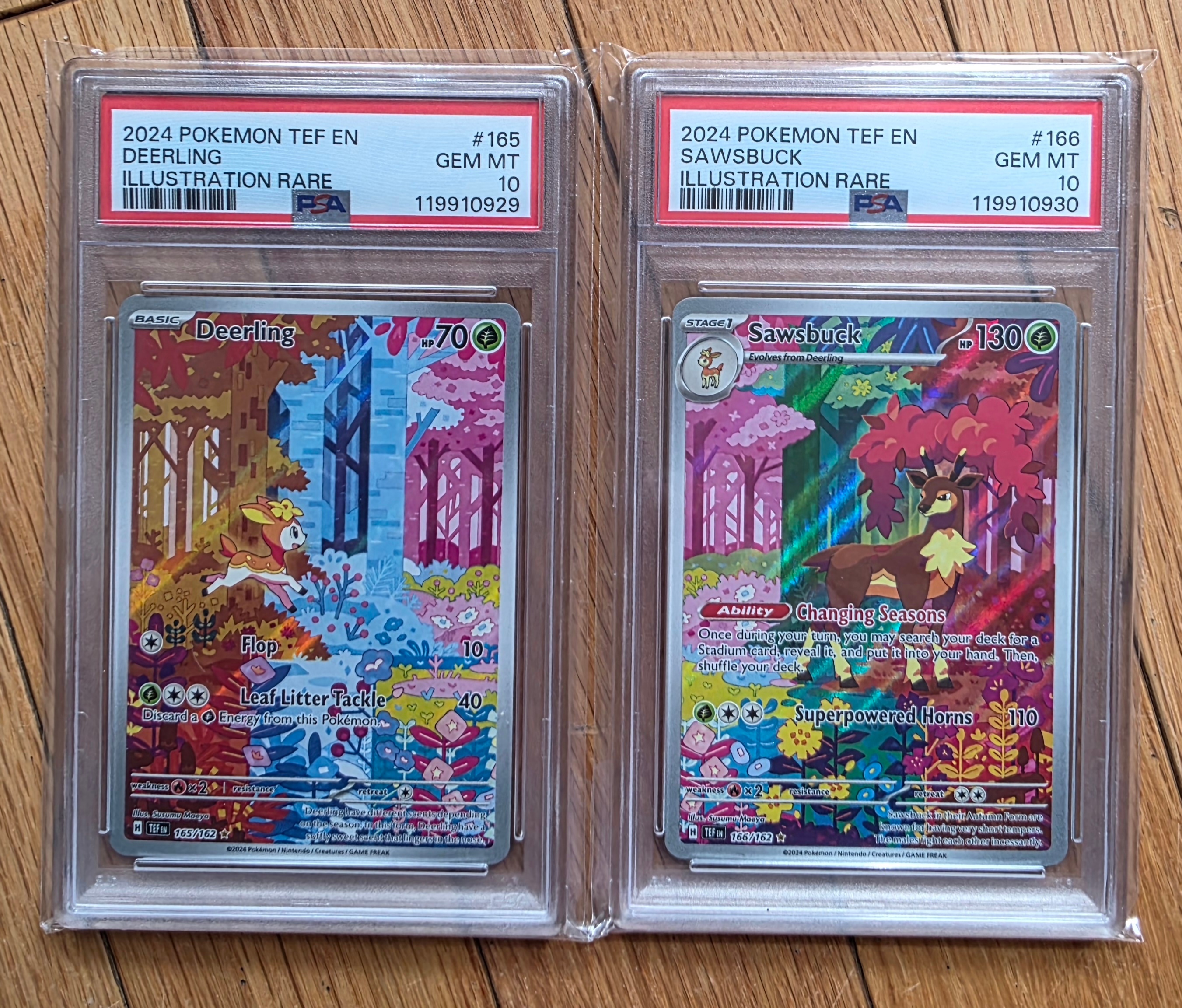Selling 2024 Pokemon TCG SEQUENTIAL Deerling & Sawsbuck 165 166 Temporal Forces PSA 10