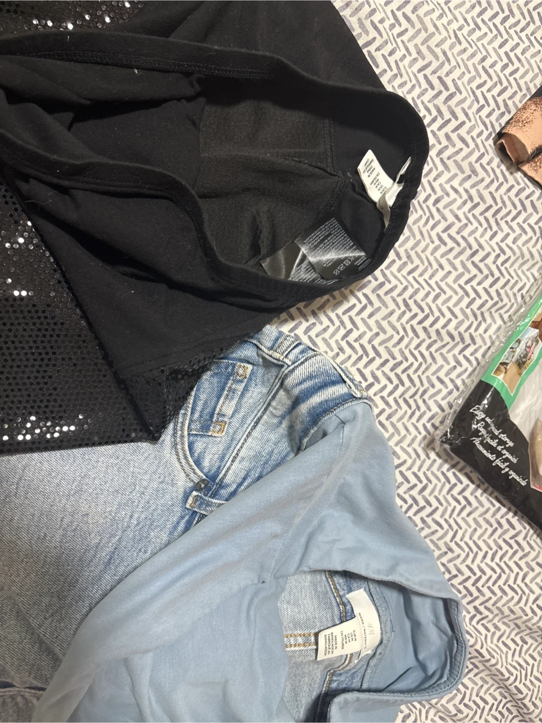 A bundle including Thyme Maternity leggings and H&M maternity jeans. Also includes a leopard print top and a black sequin skirt. Great for expectant mothers or those looking for comfy basics! M size