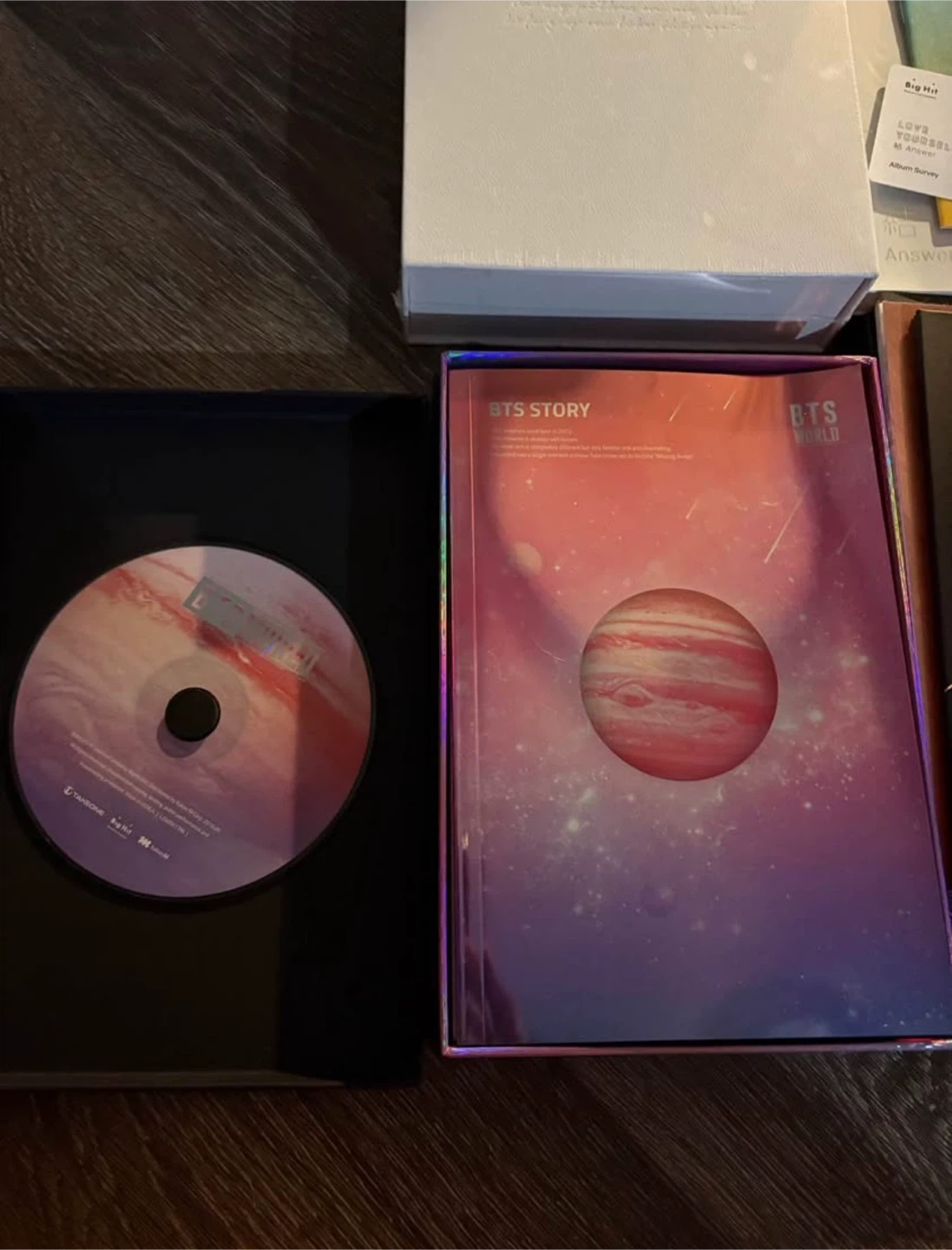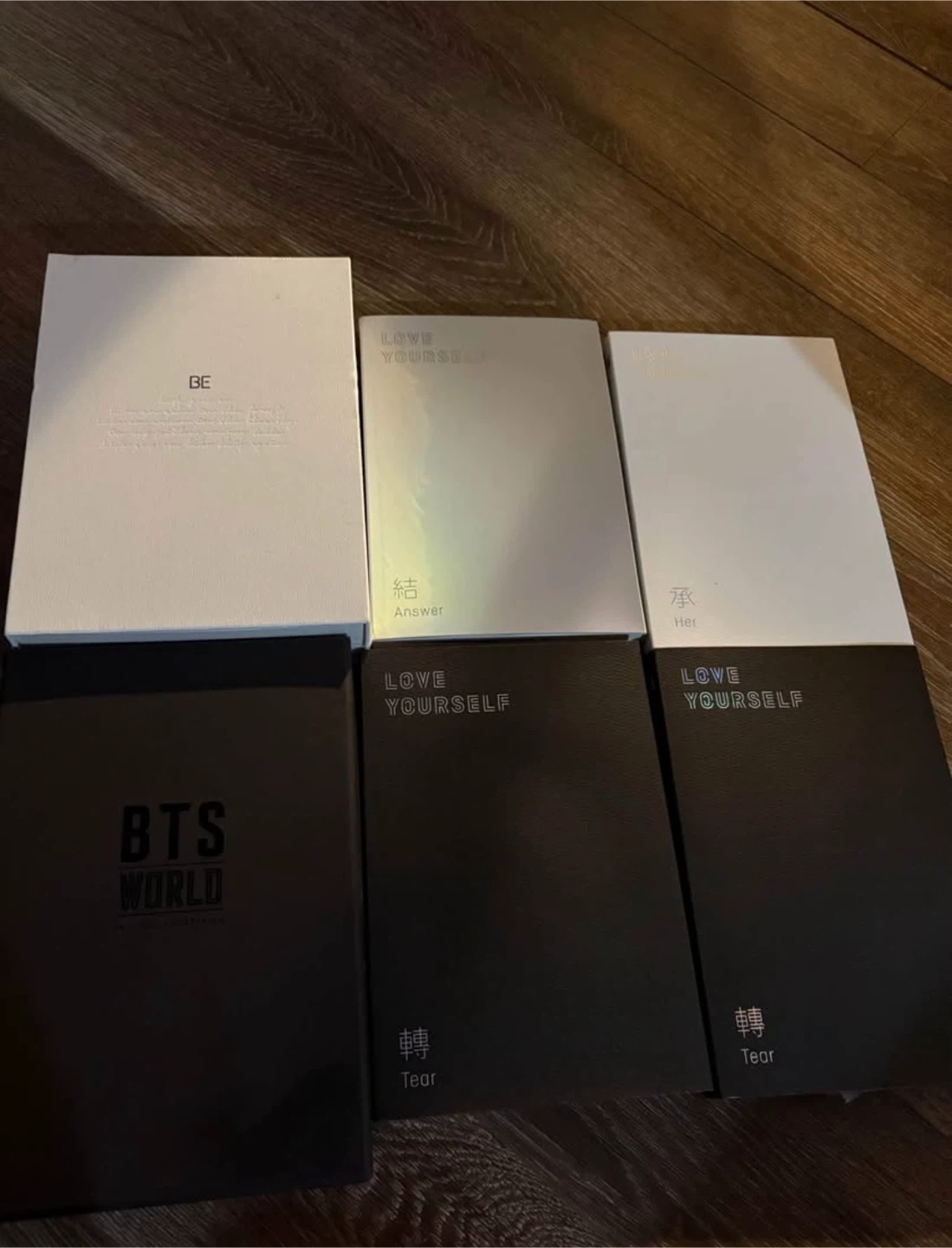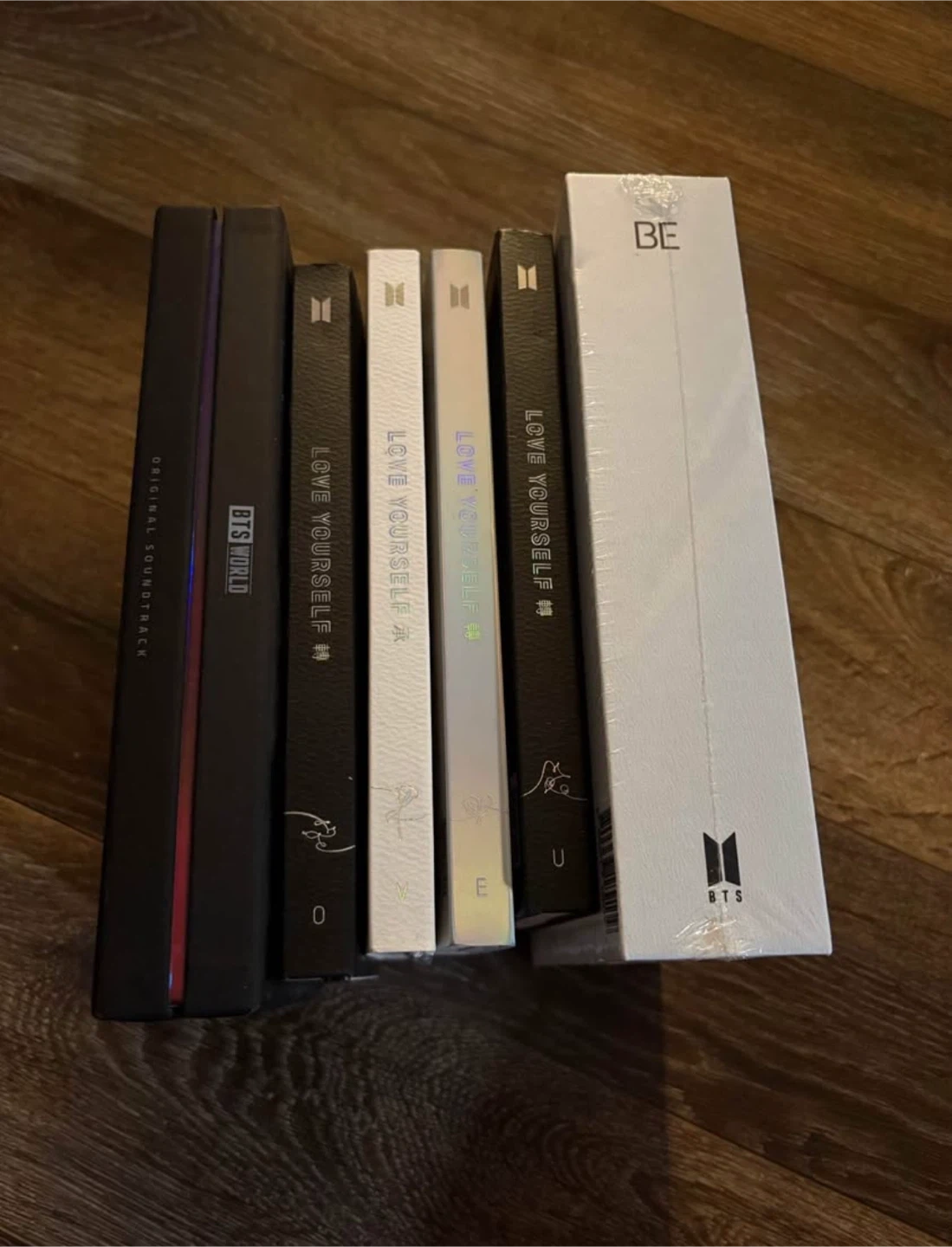 65Selling a collection of BTS albums! Includes: - BE - Love Yourself: Answer - Love Yourself: Her - Love Yourself: Tear - BTS World Original Soundtrack All albums are in great condition and come with the original inclusions like CDs and photo books Never used, only bought to collect, White album still sealed in plastic **no missing pieces** All discs, photo albums, song lists, etc..included