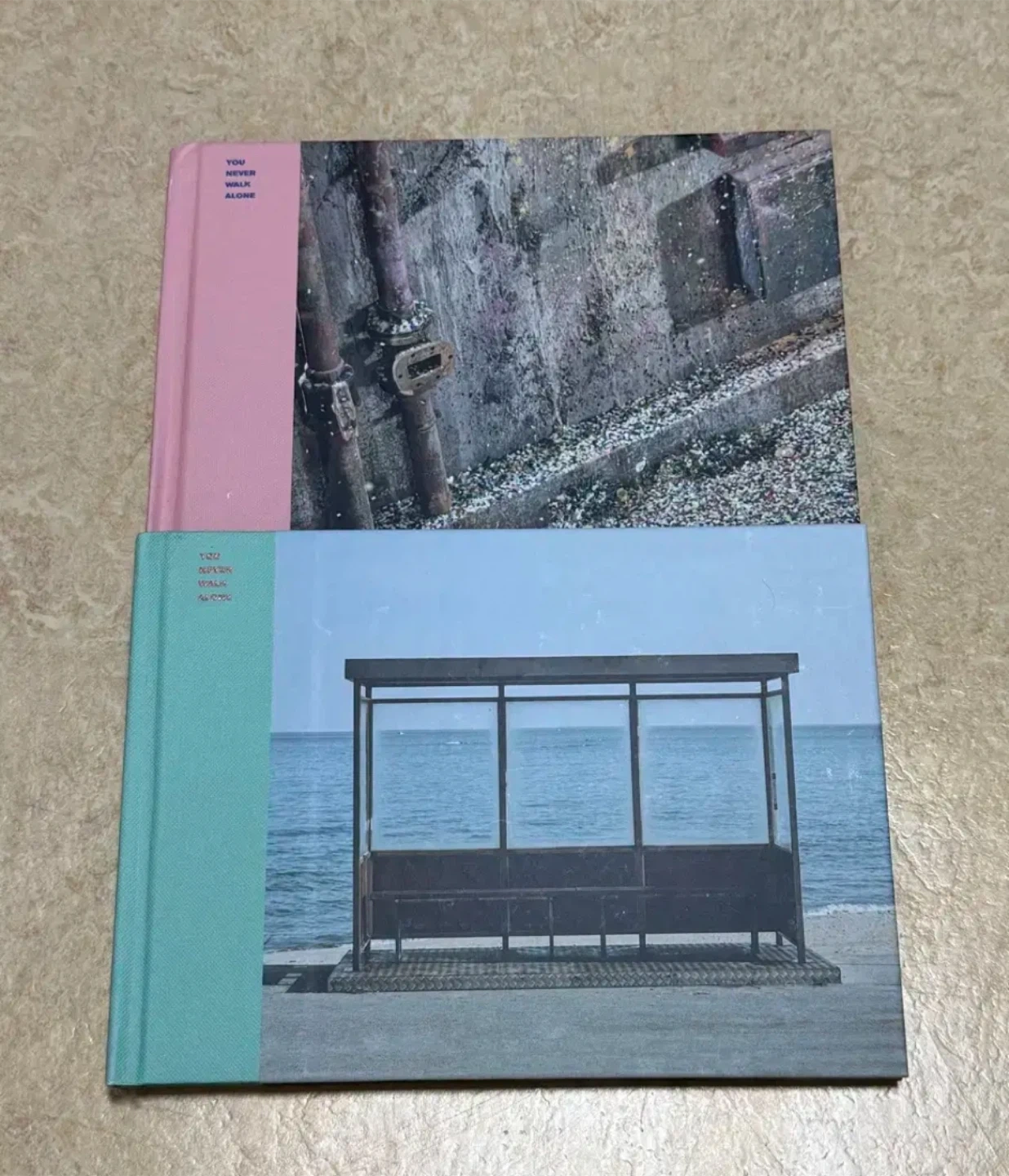 Selling two BTS albums: You Never Walk Alone. One is the left version (pink) and the other is the right version (blue). 10$ in set
