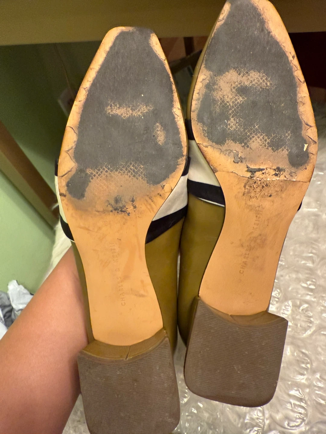 Selling a pair of Charles & Keith heels in a unique olive green colour. They feature a stylish bow detail. These heels are perfect for adding a touch of sophistication to any outfit!
