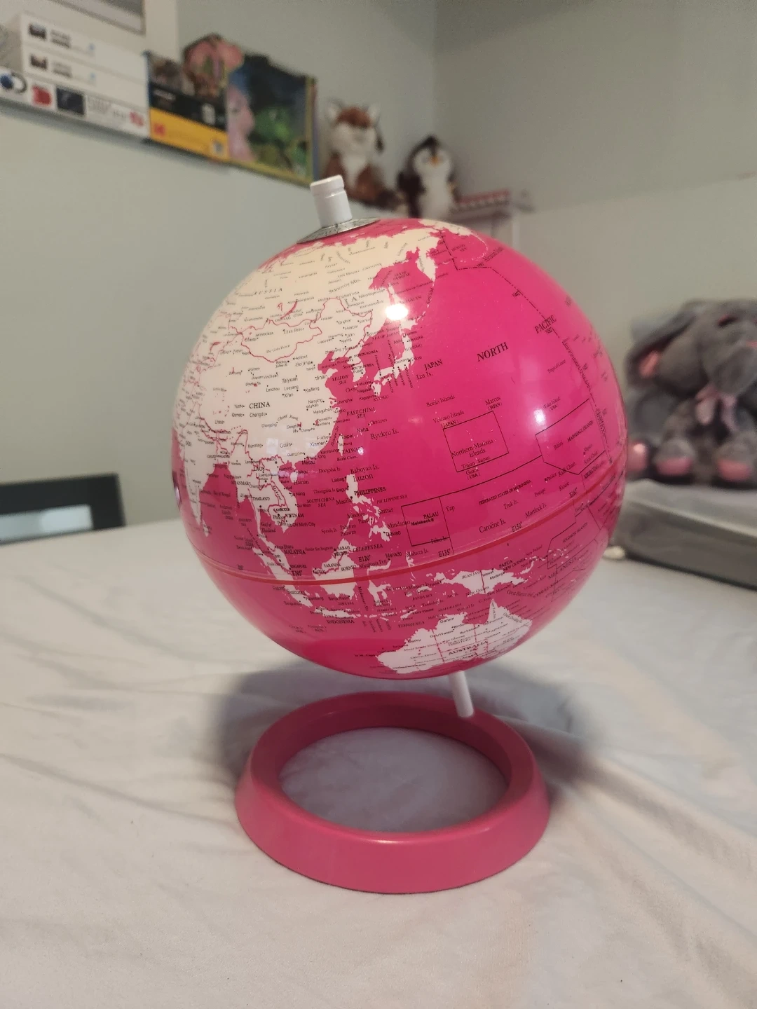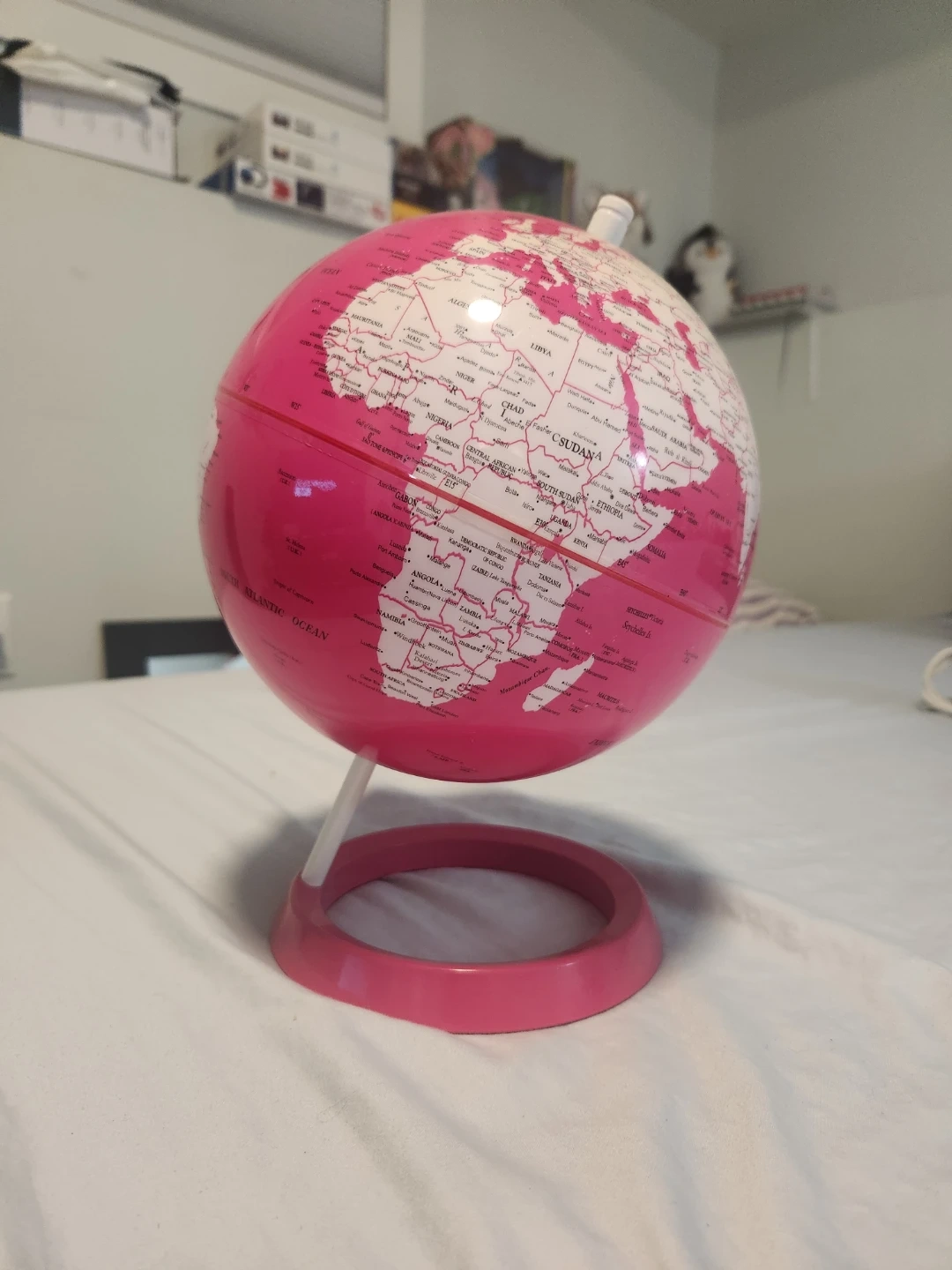 Selling a cute pink world globe! It would be a great addition to a kid's room or as a decorative piece. It's in good condition and ready for a new home