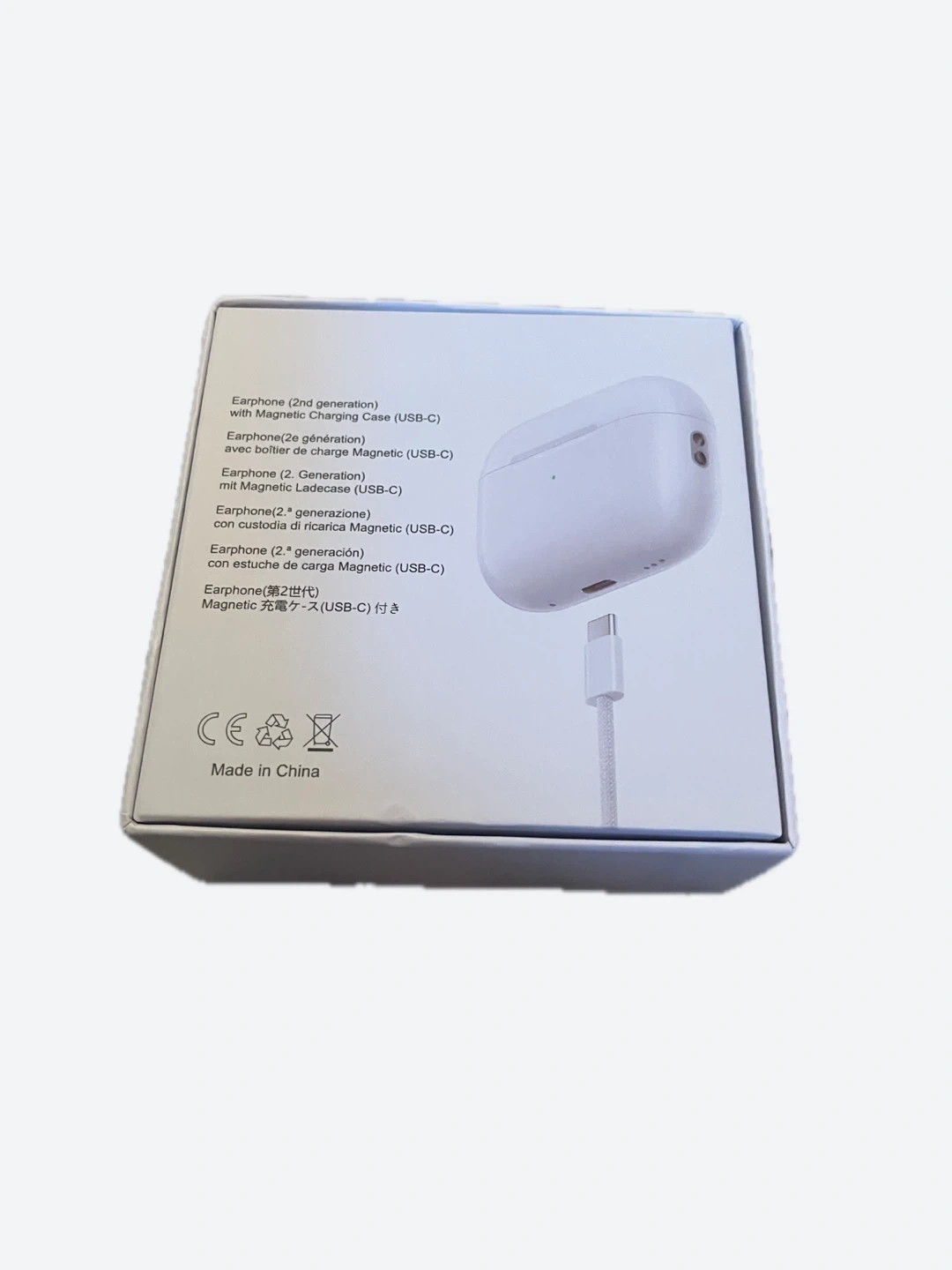 These are the Apple AirPods Pro (2nd generation) earbuds. They come with the MagSafe Charging Case and a USB-C cable. Includes the original box and packaging.