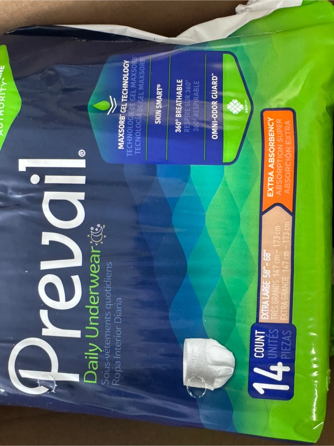 Prevail Daily Underwear in Extra Large size. It's designed for extra absorbency with 360 breathable features. Each package contains 14 units per bag and 56 per case