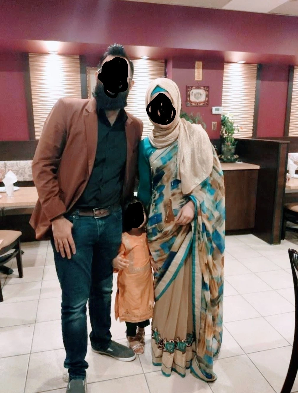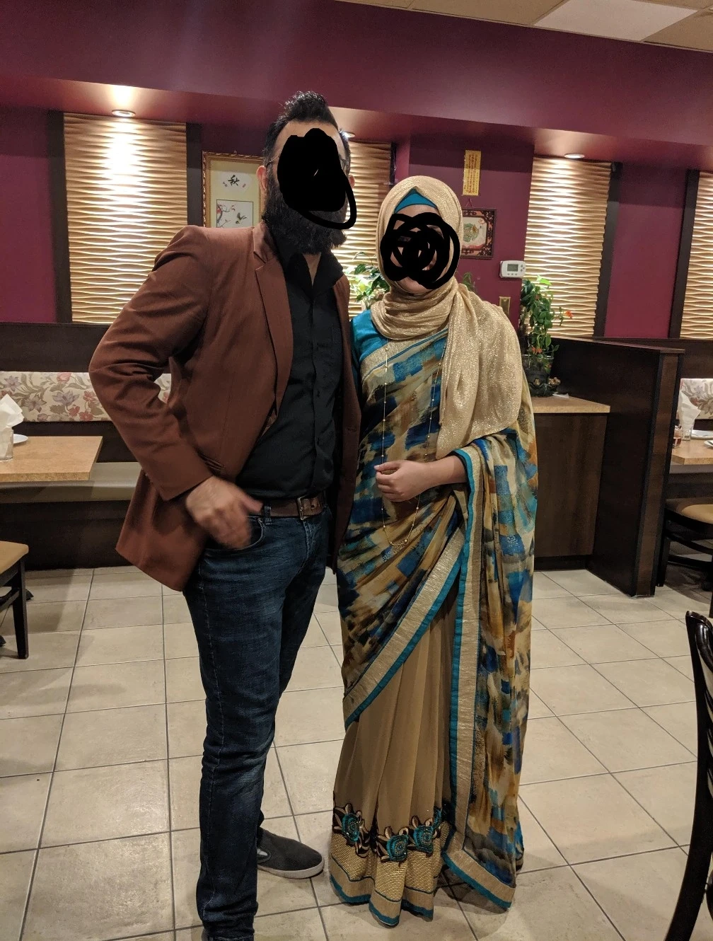 This is a beautiful saree with a gold and blue abstract pattern. The material is lightweight, perfect for occasions.