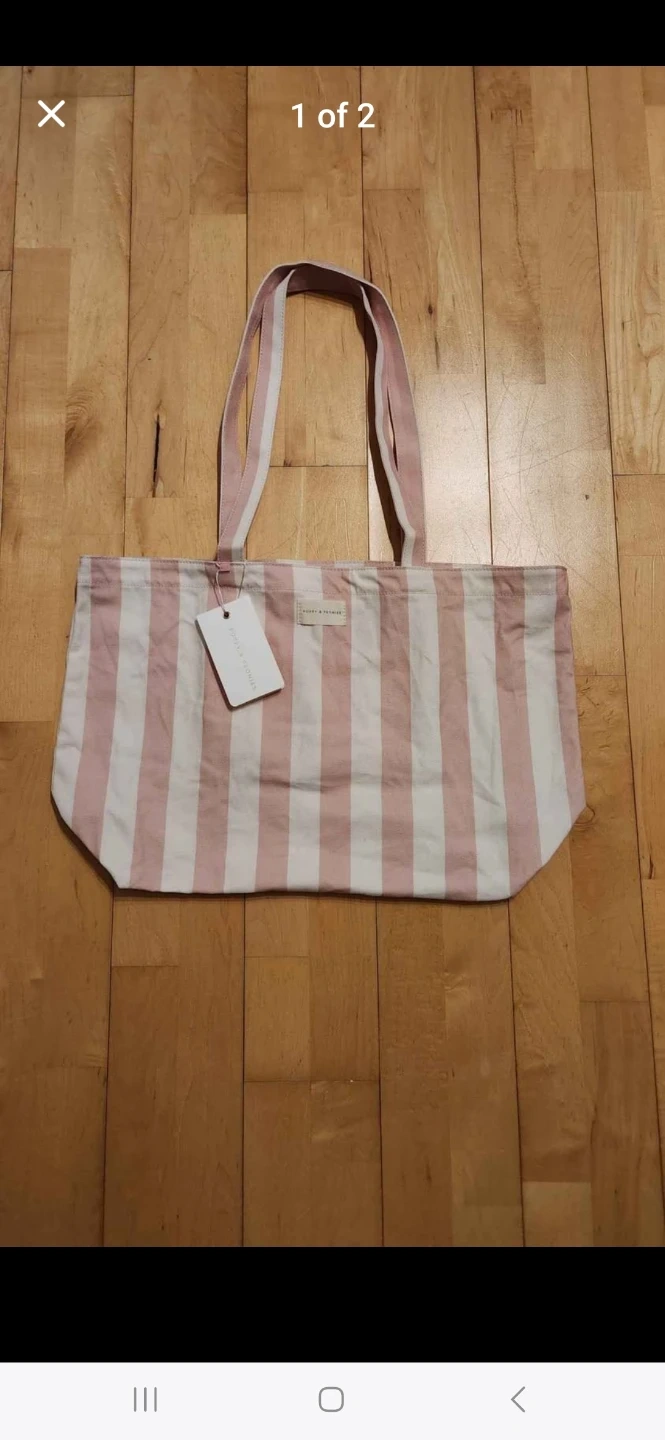 Poppy & Peonies Pink & White Stripes Large Tote Bag (Brand New With Tag)