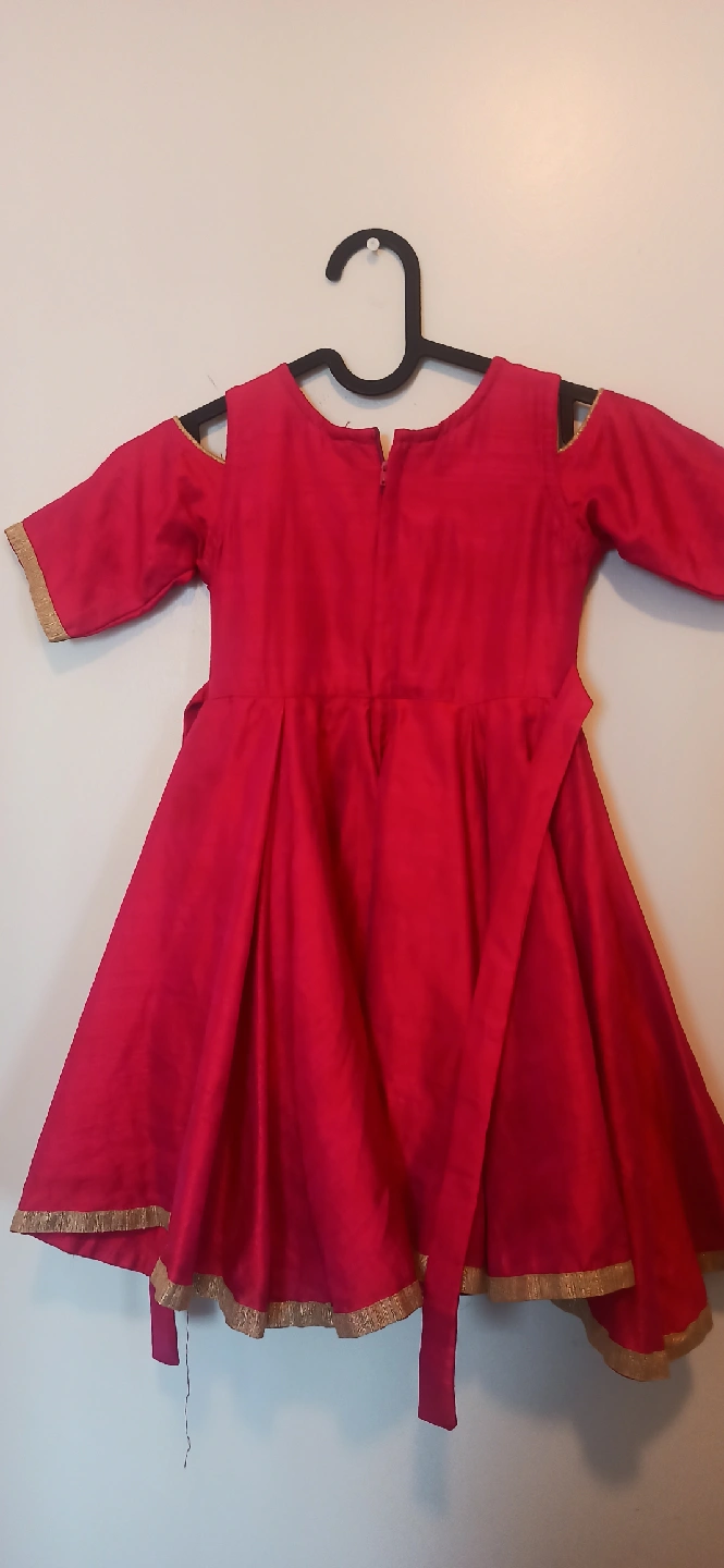 This is a beautiful red dress for girls, featuring lovely gold embroidery. It's in great condition and ready for a new home! Perfect for parties or special occasions. used Only once my daughter outgrown so selling