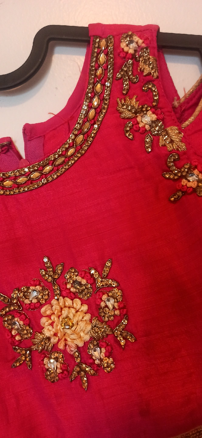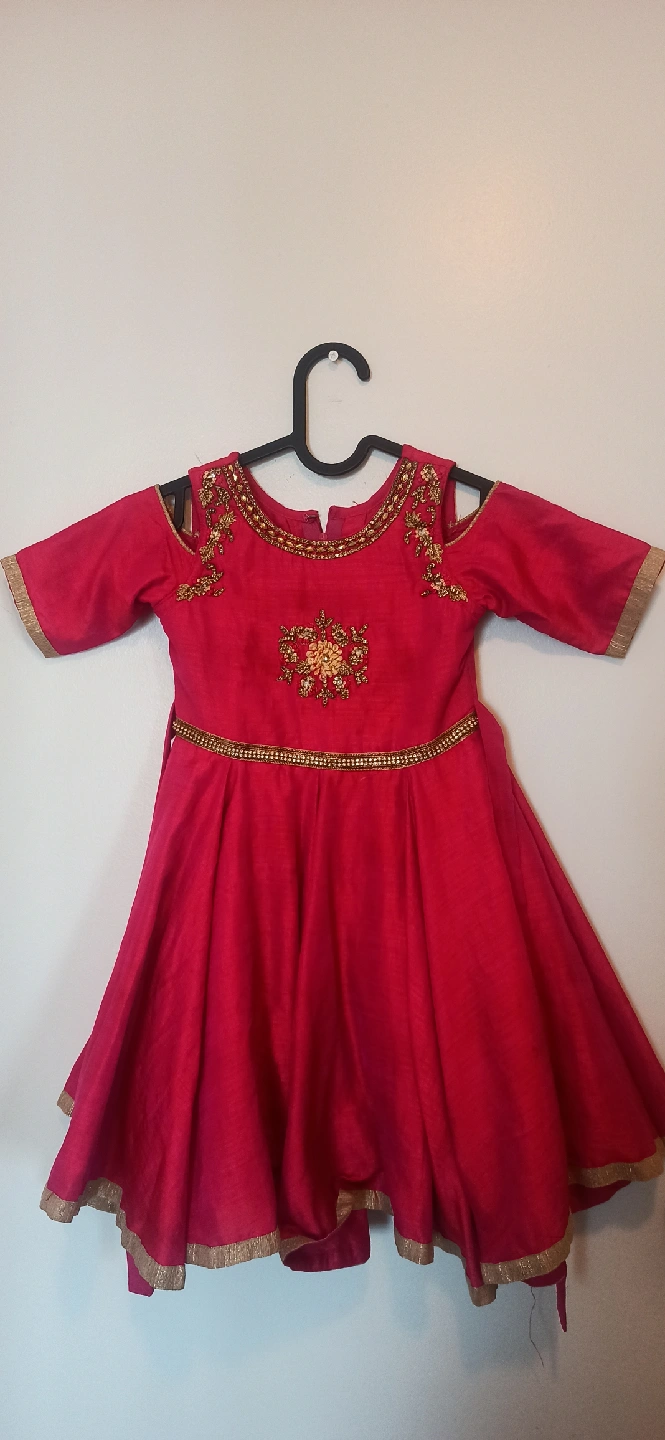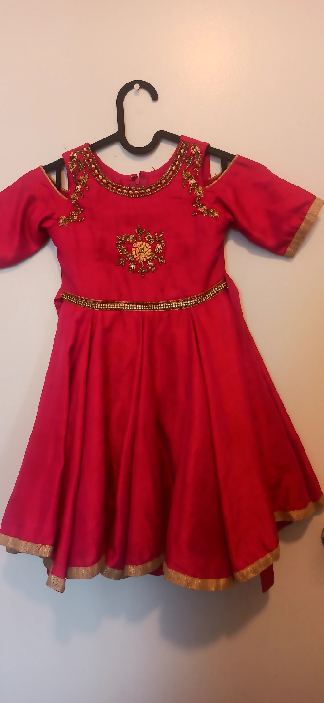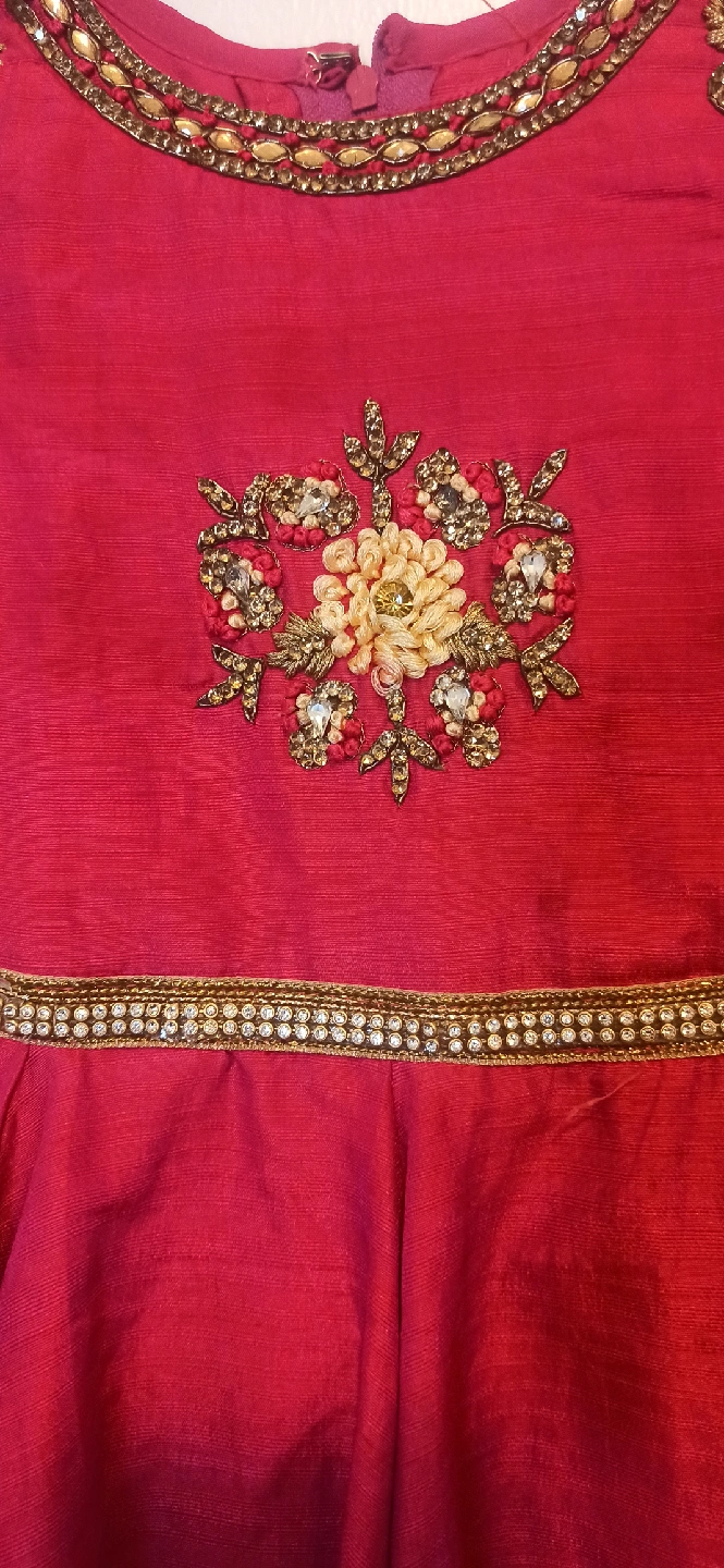 This is a beautiful red dress for girls, featuring lovely gold embroidery. It's in great condition and ready for a new home! Perfect for parties or special occasions. used Only once my daughter outgrown so selling
