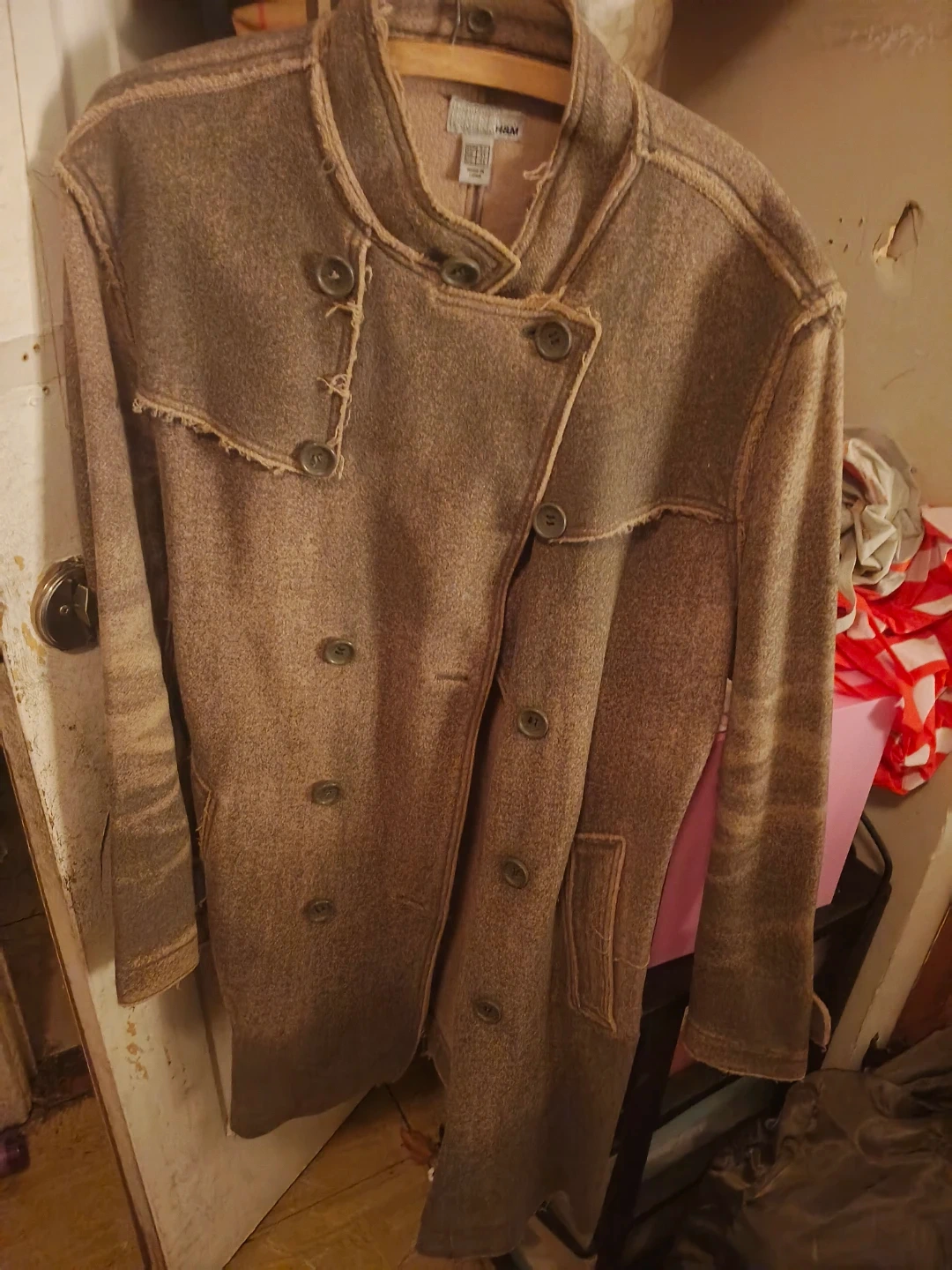 This H&M coat features a stylish double-breasted closure with buttons. Made in China, it's a size EUR 52, GB 41, US 41. It's a great layering piece for cooler weather!