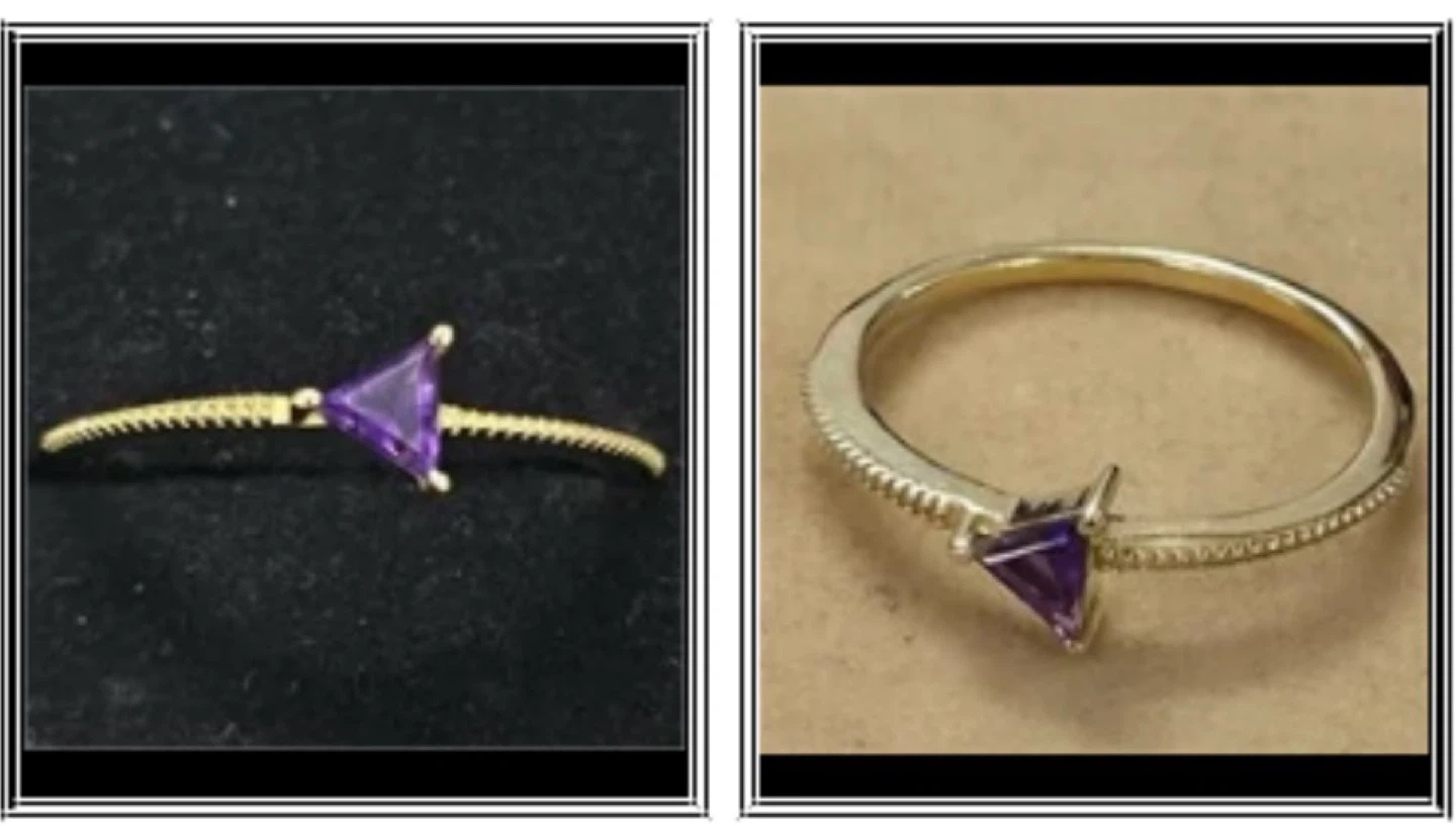 This ring is crafted from sterling silver and features a 0.25ct amethyst. It's rhodium plated and size 8. The band has a decorative, textured edge. #514