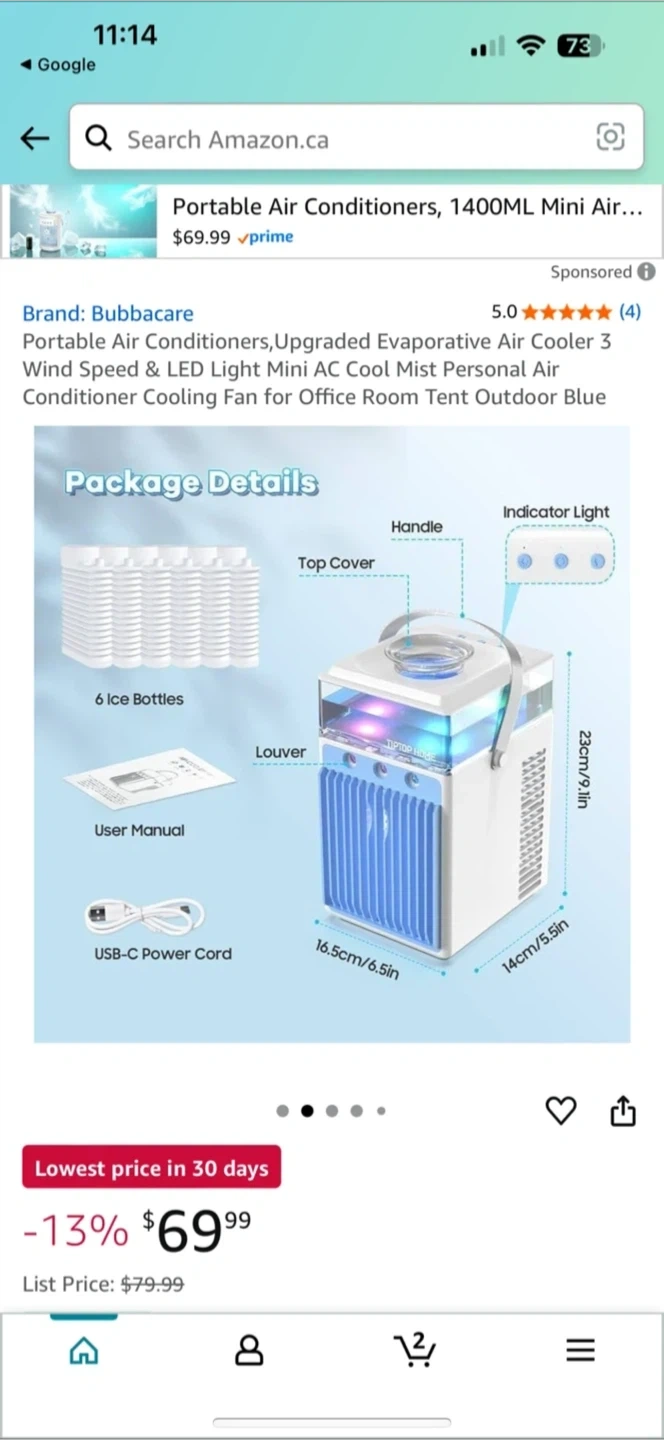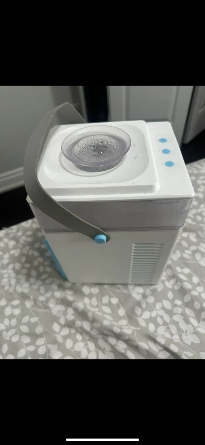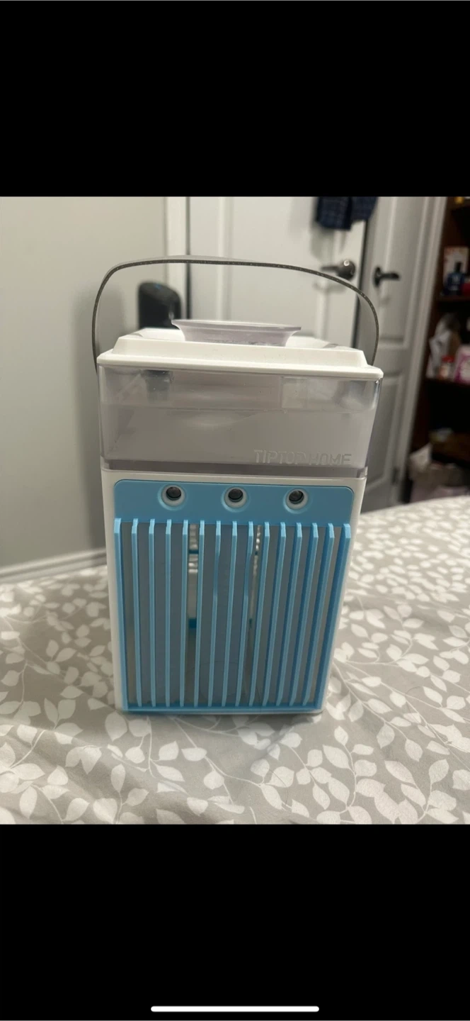 18Keep cool with this portable air conditioner and defuser from Bubbacare! It's an upgraded evaporative air cooler with 3 wind speeds and LED light. Perfect for personal air cooling in your office, room, tent, or even outdoors. It measures approximately 16.5cm x 14cm x 22cm (6.5in x 5.5in x 8.7in). Comes with a handle, top cover, and indicator light. Also includes 6 ice bottles, user manual, and USB-C power cord