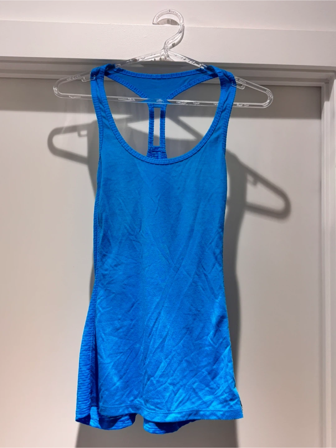 Selling a blue Under Armour tank top! It's in great condition and perfect for workouts or casual wear. Has a racerback design with a small slit at the back neckline. Made of lightweight, breathable material, making it super comfy for any activity.
