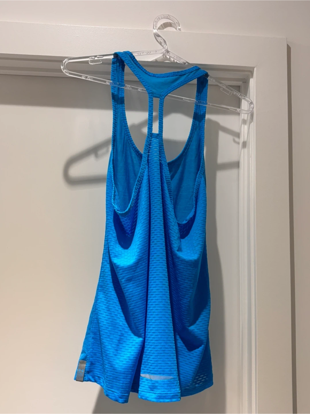 Selling a blue Under Armour tank top! It's in great condition and perfect for workouts or casual wear. Has a racerback design with a small slit at the back neckline. Made of lightweight, breathable material, making it super comfy for any activity.