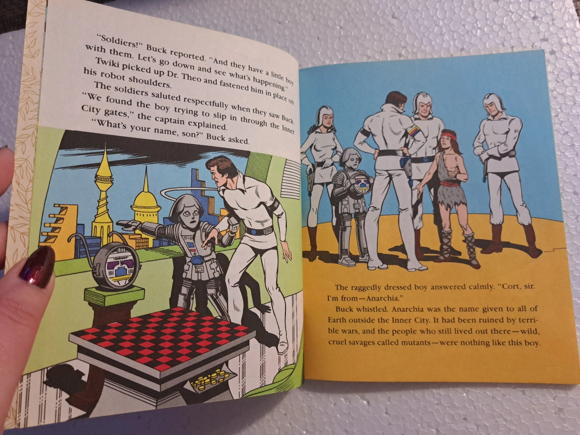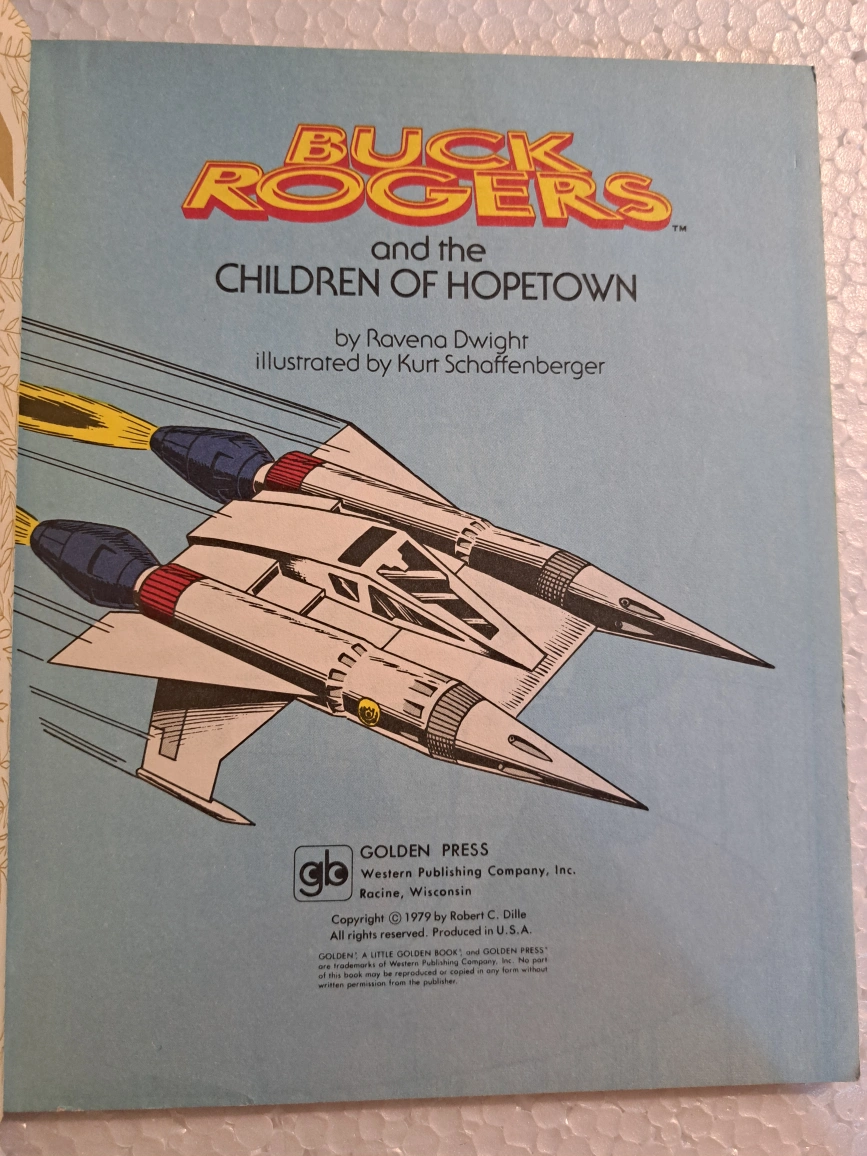 1121979 Little Golden Book telling one of the adventures of T.V. character Buck Rogers and his robot sidekick Twiki. An interesting collectables for fans of vintage science fiction.