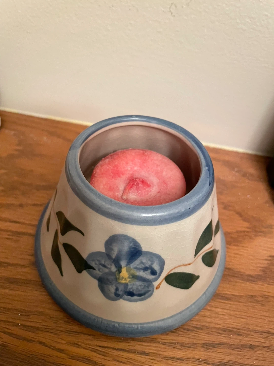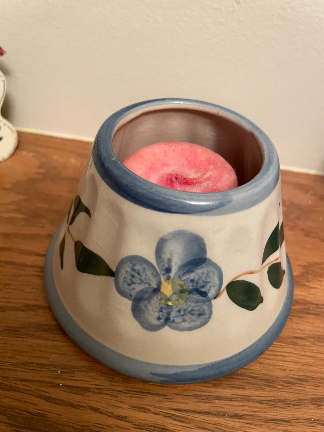 Ceramic Candle Holder with Blue Flower Design