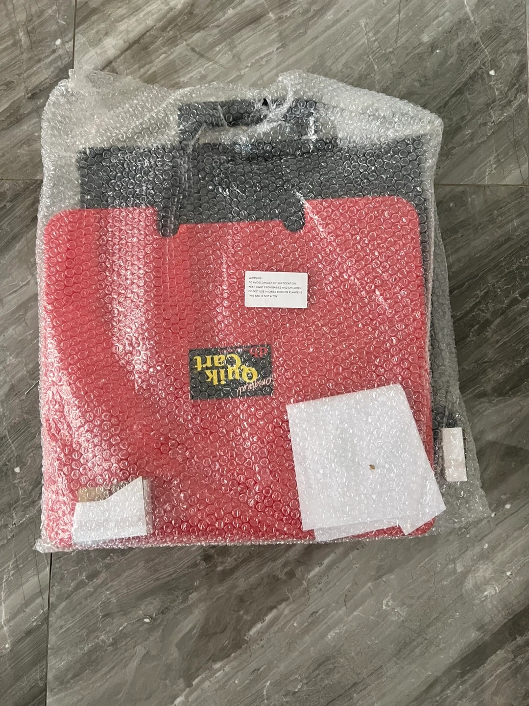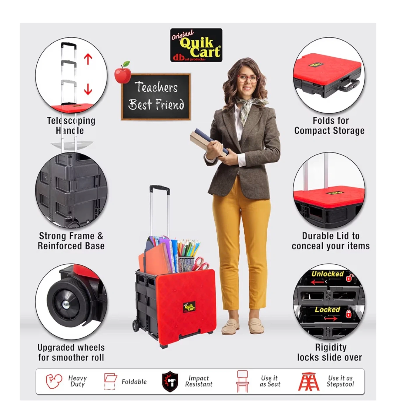This Original Quik Cart is a handy rolling utility cart that folds flat for easy storage. It's designed for durability with a strong frame and reinforced base. Use it as a seat or stepstool when needed!